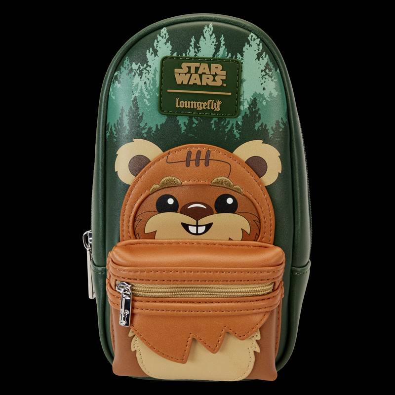 Loungefly Star Wars: Return Of The Jedi Ewok Stationery Pencil Case ($25.00) - “Travel the forest moon of Endor and you may find yourself face to face with an unlikely ally! The Loungefly Ewok Pencil Case gives shape to the adorably fierce Ewok from Star Wars: Episode VI – Return of the Jedi. On the front zipper pocket, Wicket comes to life with his signature orange hood. Tree details appear up above, and his catchphrase appears on the back. A durable lobster clip appears at the top of the case, making it easy to pack your essentials for your next adventure. The Loungefly Ewok Pencil Case is made of vegan leather (polyurethane). Case zips closed with shiny silver hardware. Additional features include applique and printed details. Take note of the coordinating inside lining."