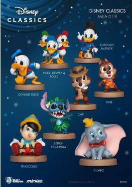 - Another fun figure assortment features classic Disney characters like Dumbo, Chip ‘n Dale, and Pinocchio. These mini pieces can be displayed together o brighten up several spots in your home.