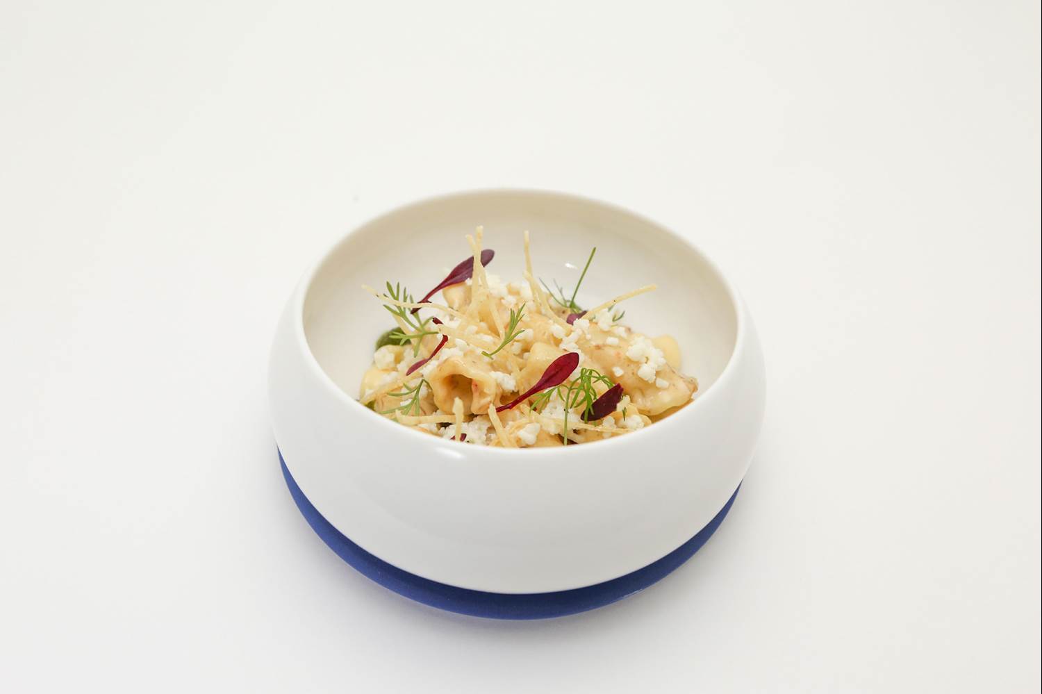 - Imported Italian Ricotta Cheese Filled Agnolotti, Roasted Broccoli Rabe, Crispy Garlic, Calabrian Chili, Romano Cheese, Lemon Scented Olive Oil