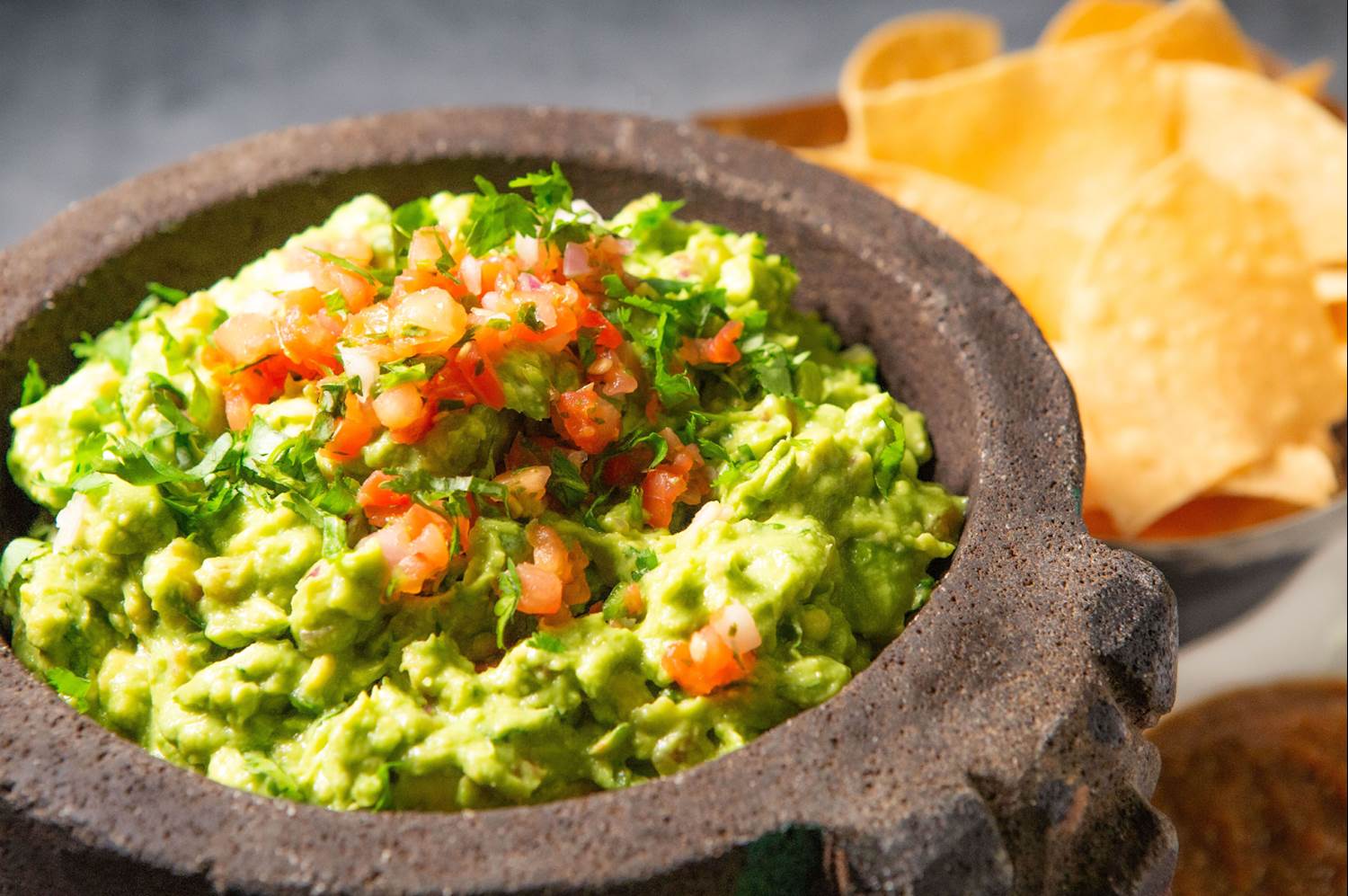 - Signature Classic Guacamole en Molcajete, Fresh Tortilla Chips, Roasted Tomato Salsa