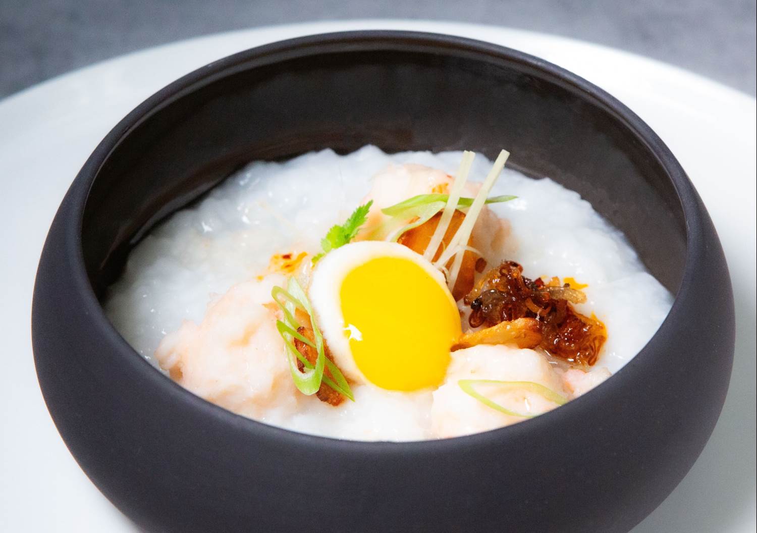 - Congee, Slow Cooked Rice Porridge, Shrimp Dumpling, Fried Shallot, Green Onion, Garlic, Crispy Chili Flakes