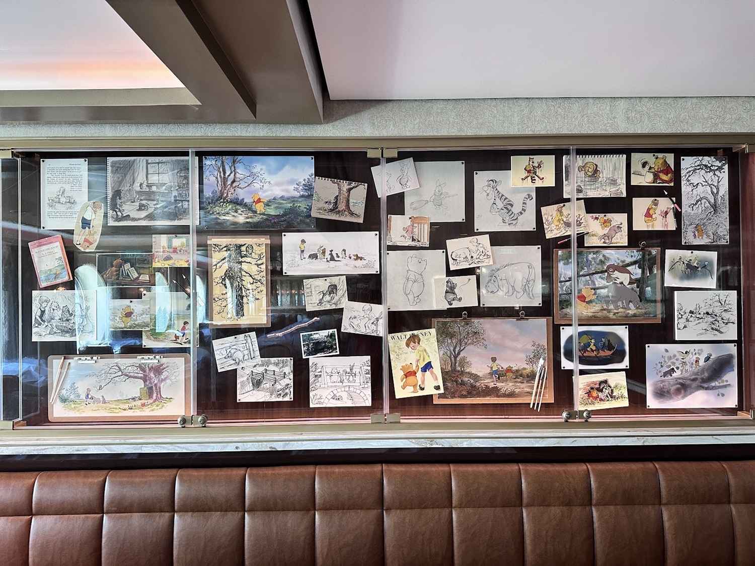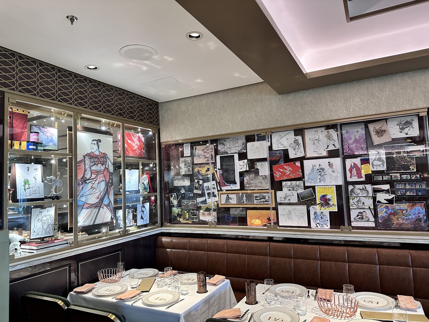 Split into two halves - named after both Roy Disney and Walt Disney, tables are surrounded by art, artifacts, and props from many films in the Walt Disney Animation Studios and Pixar Animation Studios catalog, immersing guests into classic hollywood while they dine on fresh California-style cuisine.