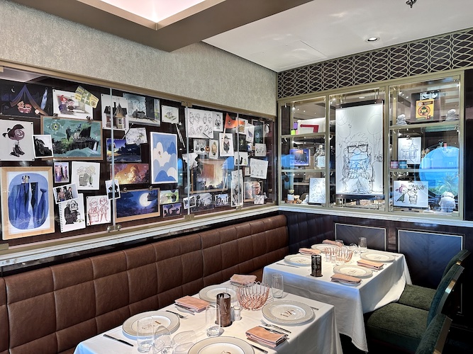 The restaurant, a staple of this class of ship in the fleet originally debuted on the Disney Wish, and will also be replicated aboard the upcoming Disney Dream. However, this doesn’t mean that they’re all carbon copies of each other. Each dining room, named after the year The Walt Disney Studios was founded, elegantly celebrates the imagination of classic animation and the unwavering spirit of the original studio that started it all - plus Pixar Animation Studios too.