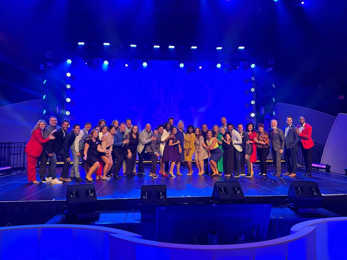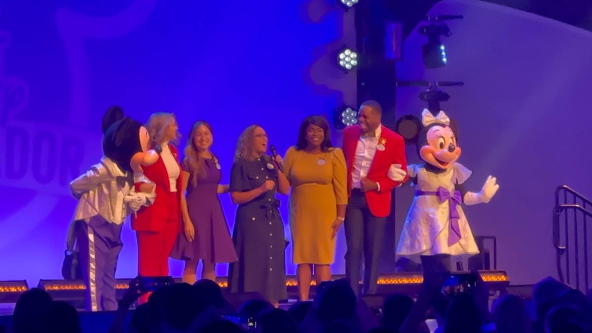 - At the end of the ceremony, a huge group of current and former Walt Disney World Ambassadors came together for a group photo on stage.