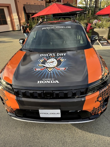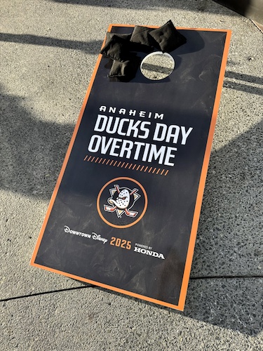 - But the fun didn’t stop there, as Anaheim Ducks Day continued out into Downtown Disney with a Honda Prologue activation, complete with a game of cornhole.