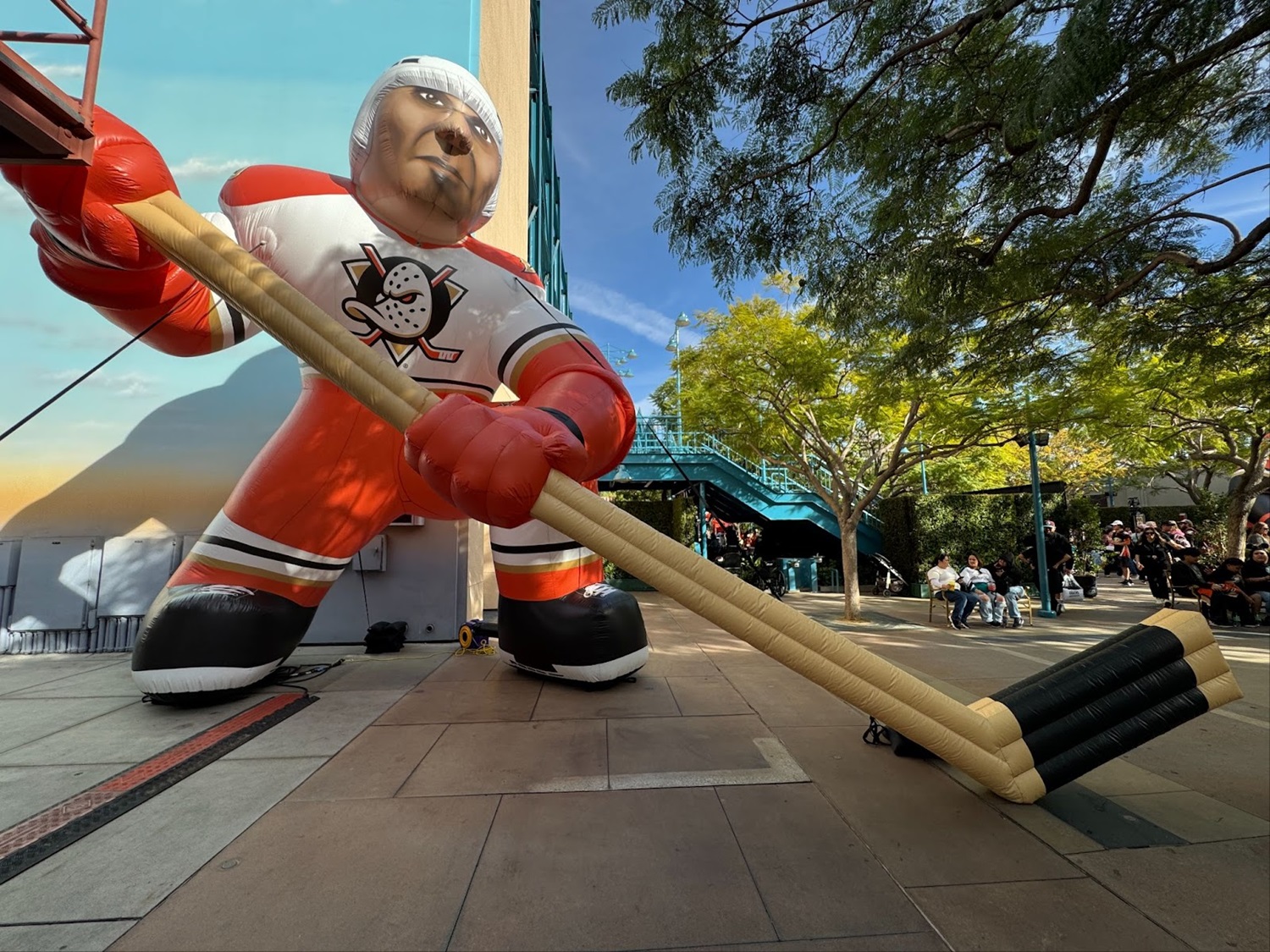 - The over-the-top celebration had some incredible decorations and photo opportunities for Ducks fans, including a giant inflatable hockey player, a wall of jerseys, a goalie photo opportunity, and a Wild Wing mascot meet and greet.