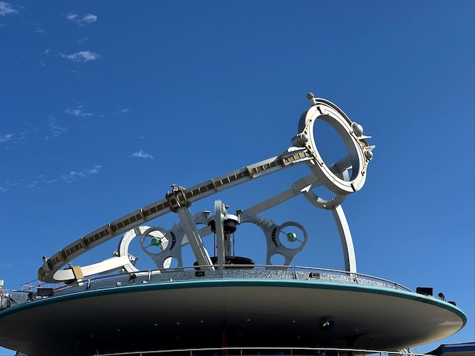 - Normally depicting a solar system display, the rings around the attraction have had all of their planets removed.