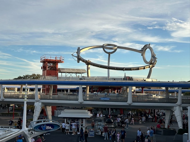- Positioned on top of the PeopleMover, the rocket-themed flat ride is an iconic part of Tomorrowland, which normally features themed planets, lights, and provides kinetic energy throughout the land.