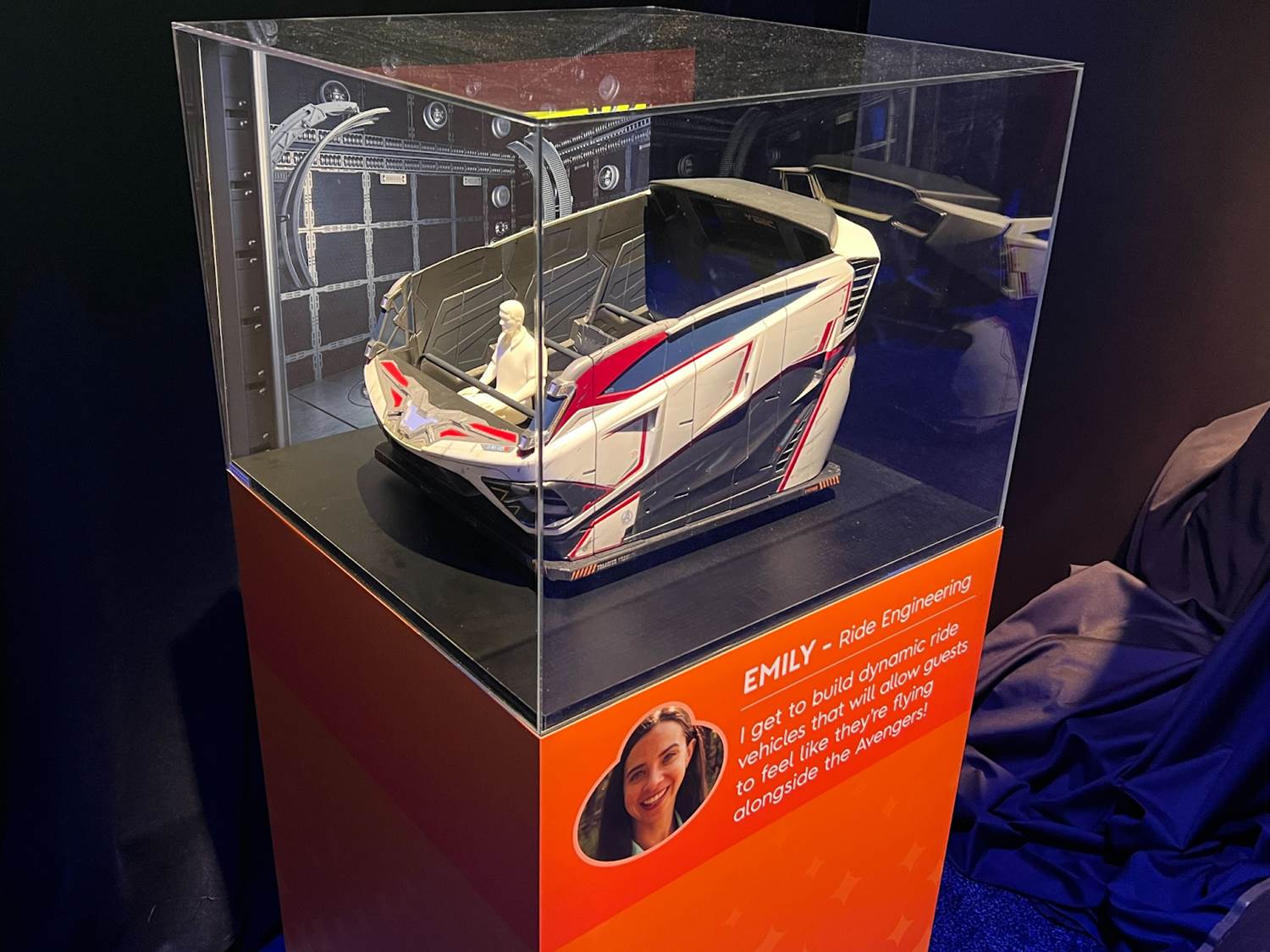 - One of those models showcased is for the ride vehicle for the new Avengers Campus attraction based in the multiverse.