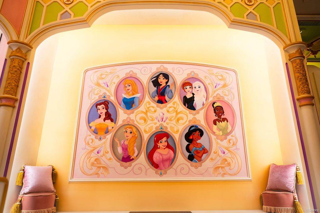 - Throughout the elegant shop, elements representing familiar and beloved icons from the Disney Queens and Princesses are seamlessly interwoven into the decor; Cinderella’s slipper, a lamp for Jasmine, Mushu’s crest for Mulan, and more might catch the attention of avid royal fans.