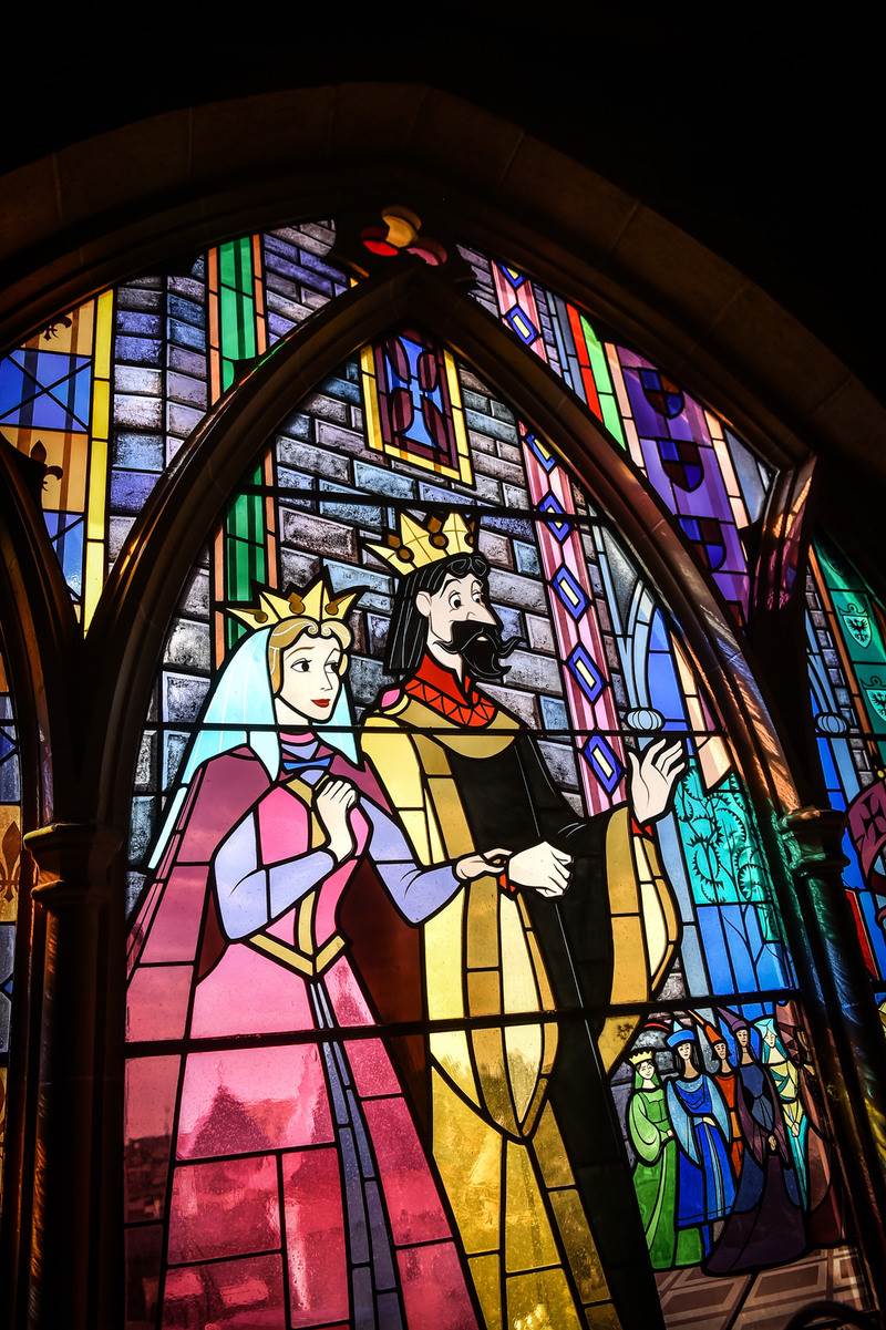 - This budding romance culminates in an anthological kiss, immortalized in one of the stained-glass windows of La Galerie du Château, in the heart of Sleeping Beauty Castle.
