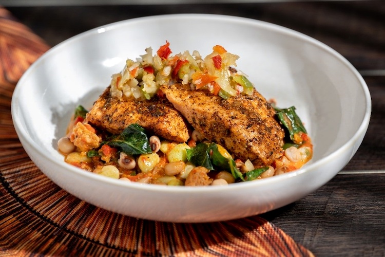 - Blackened Salmon with Plant-based Hot Italian Sausage-Bean Ragoût (New)