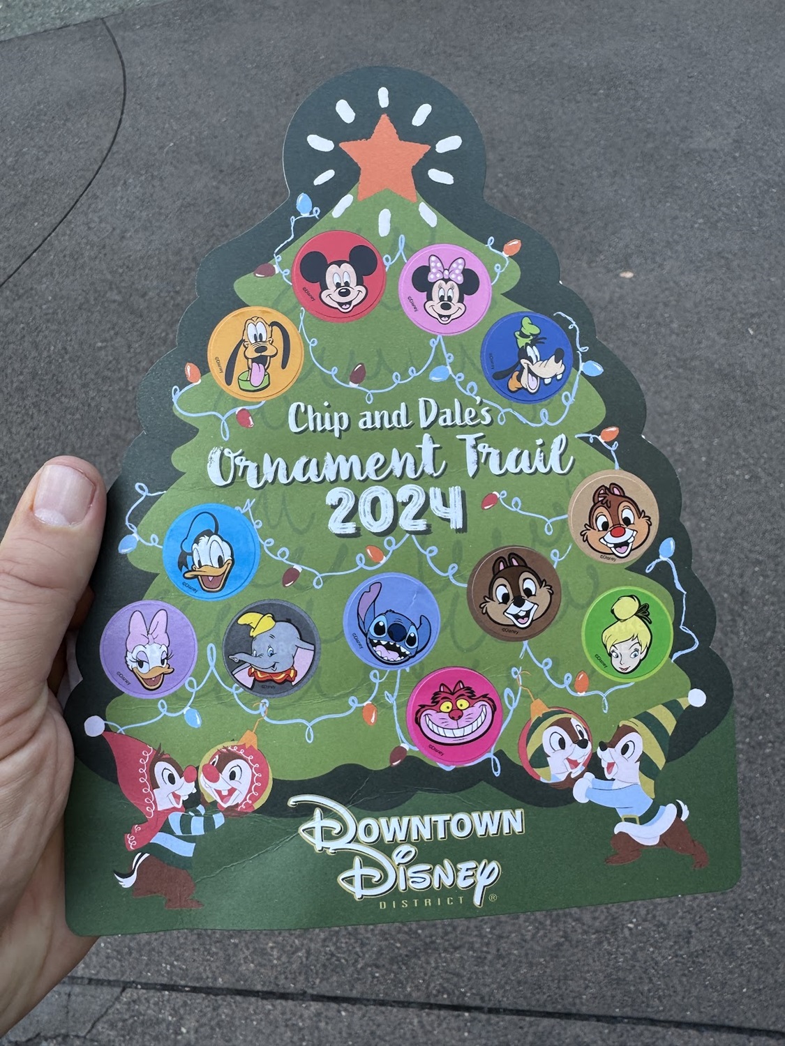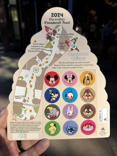 Those participating will find ornaments featuring Chip, Dale, Pluto, Goofy, Cheshire Cat, Dumbo, Tinker Bell, Mickey Mouse, and others, to place on their special map.