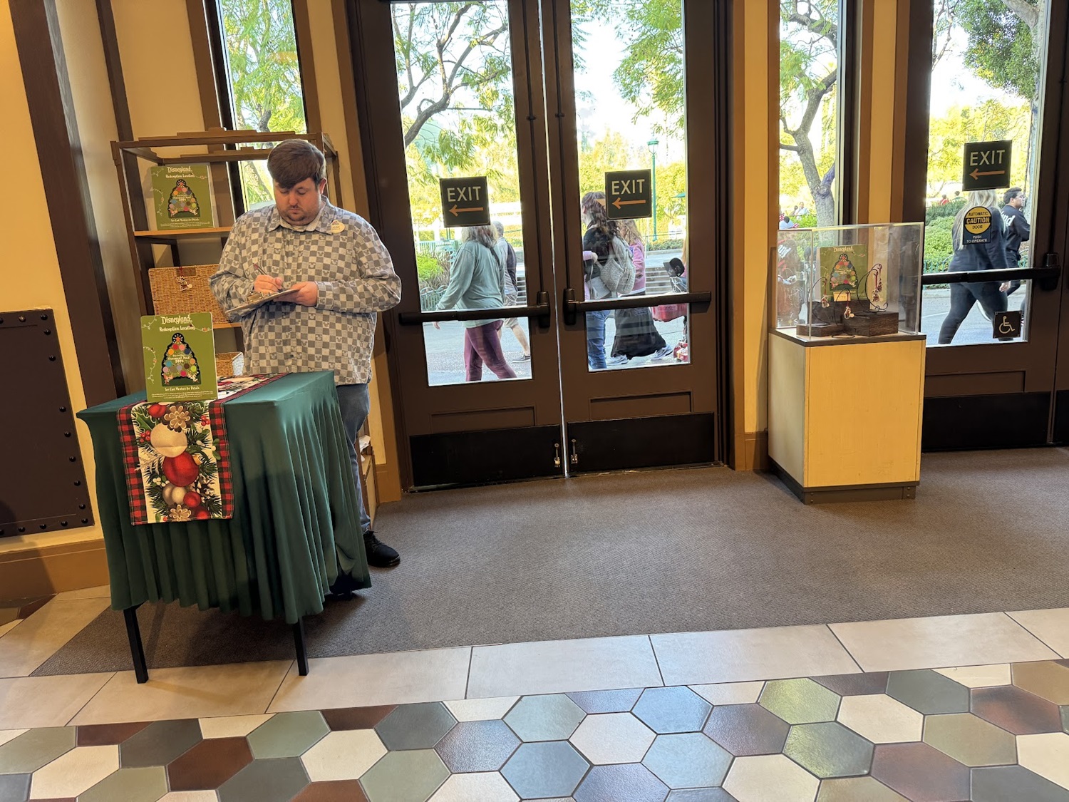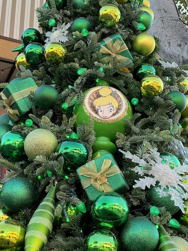 Then, head out into the Downtown Disney District to find character-themed ornaments on the holiday trees throughout the area. When an ornament is found, place the corresponding sticker on your map.