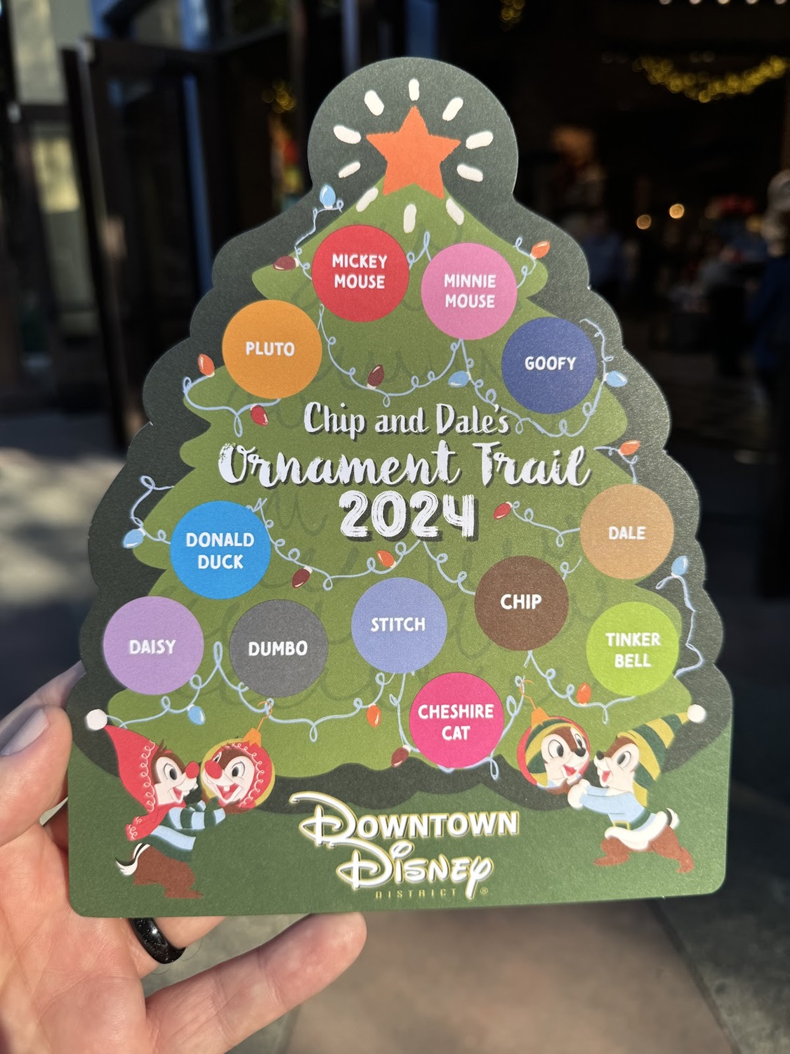 Now through January 1st, 2025, guests visiting the Disneyland Resort can spend some time participating in the Chip & Dale Ornament Trail - a scavenger hunt of sorts where participants must find characters hidden on ornaments throughout the Downtown Disney District. Even better, you don’t have to have park admission to participate!