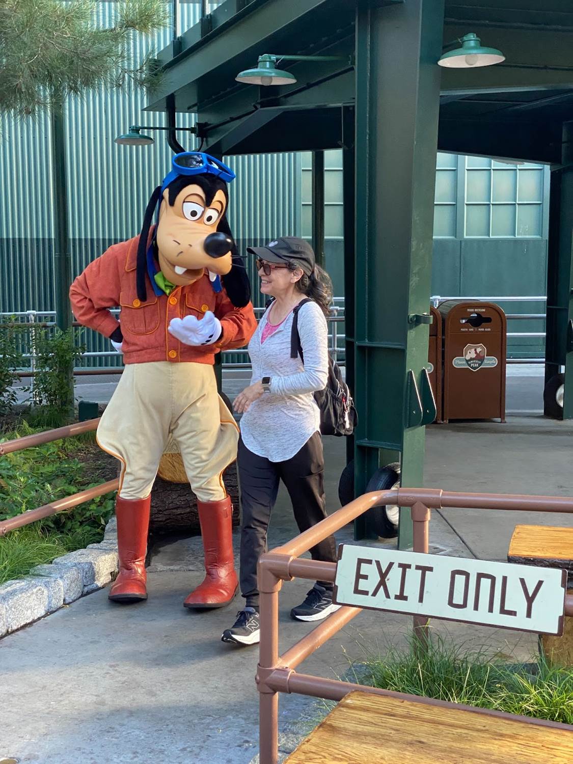 As we approached the finish line near Carthay Circle, we were cheered on by more Volunt-Ears and announcers. Then we even spotted aviator Goofy outside Soarin’ Around the World before we exited the park itself.