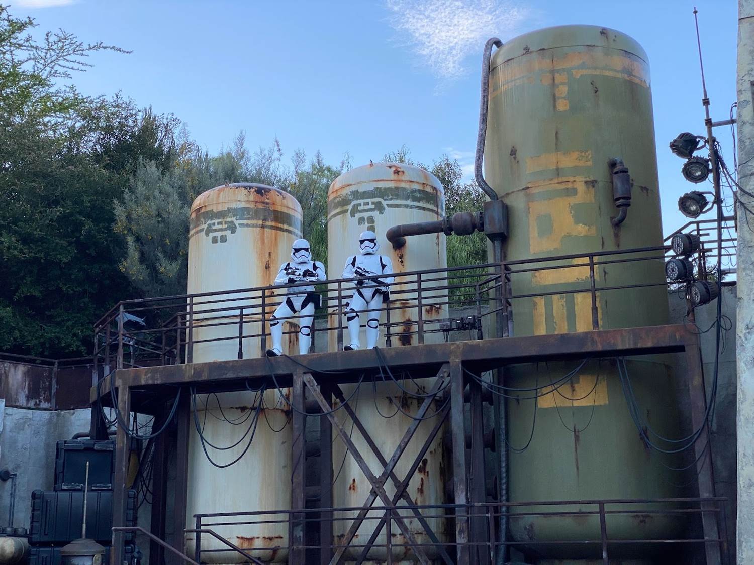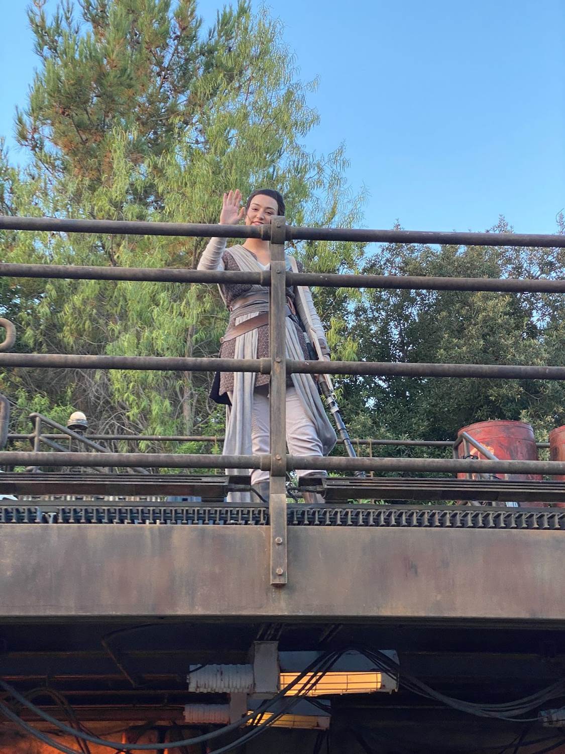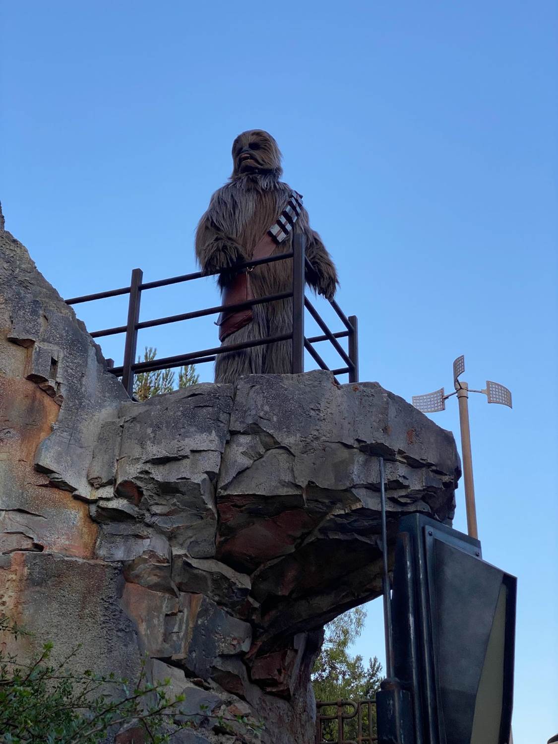 Next the course turned into Star Wars: Galaxy’s Edge, where we spotted Chewbacca and Rey waving down from above Black Spire Outpost.
