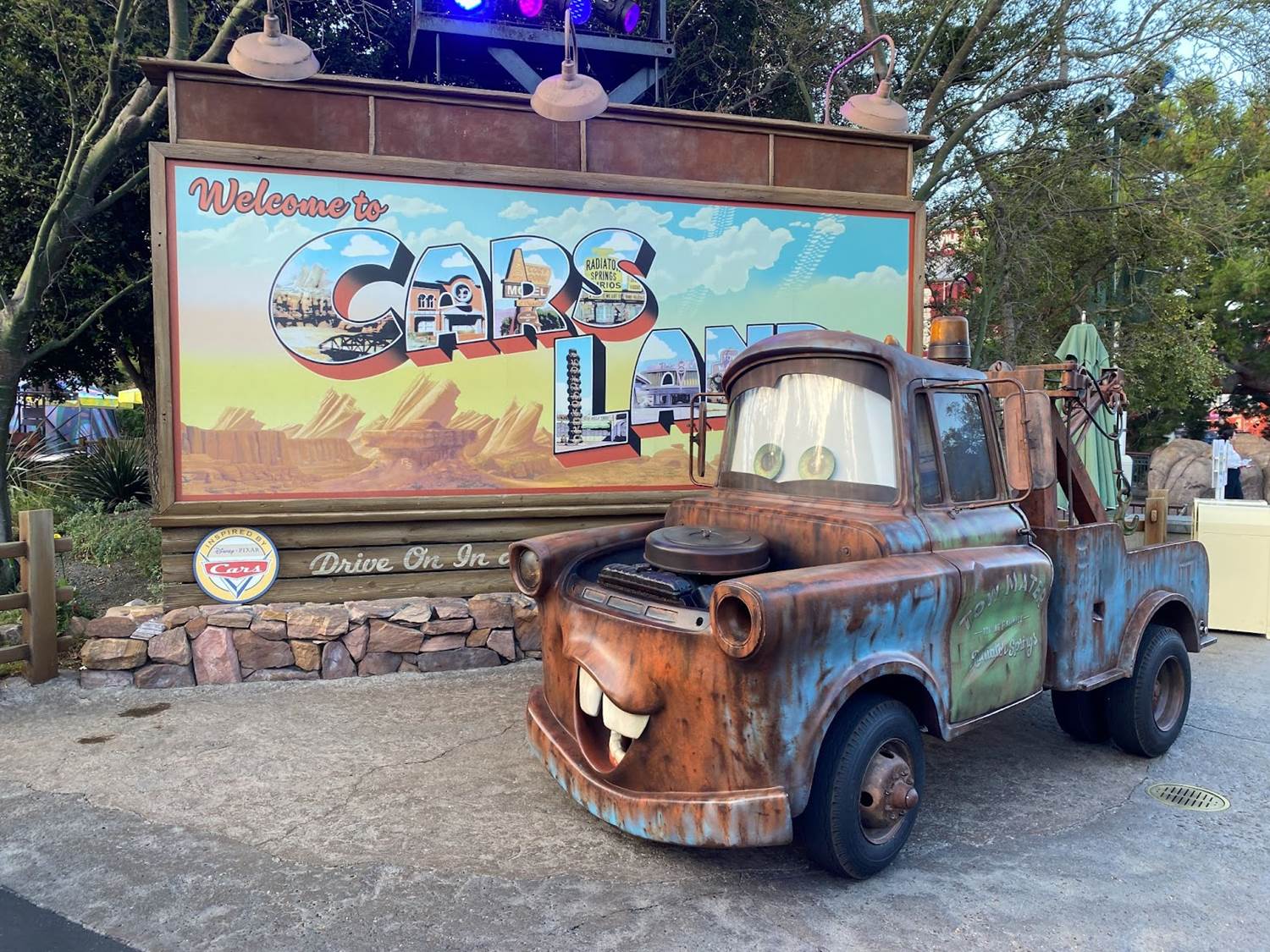 Then it was time to cross the Disneyland Resort esplanade into Disney California Adventure, where Oswald the Lucky Rabbit was stationed in a Red Car Trolley. Other characters included Mike Wazowski in front of the Monsters Inc. attraction, Spider-Man, Shang-Chi, and Ms. Marvel in Avengers Campus, and Lightning McQueen and Tow Mater in Cars Land.