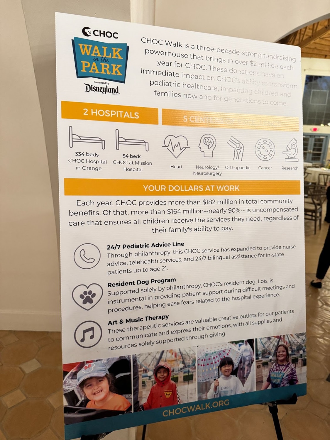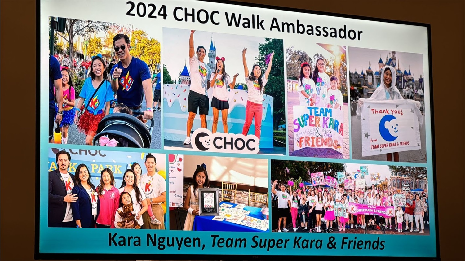 - The CHOC Walk Awards Recognition event celebrated those who contributed the most to the 2024 CHOC Walk in the park, including sponsors like Disneyland Resort and the participating teams who accomplished the highest fundraising goals.