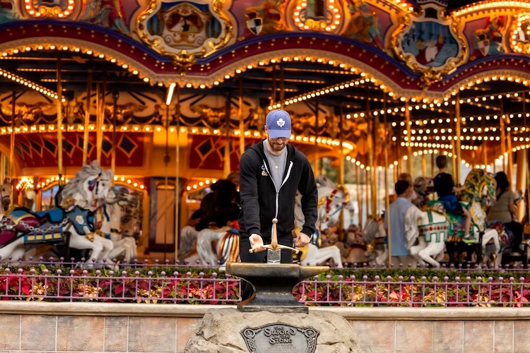 Chris Evans Pulls the Sword from the Stone at the Magic Kingdom