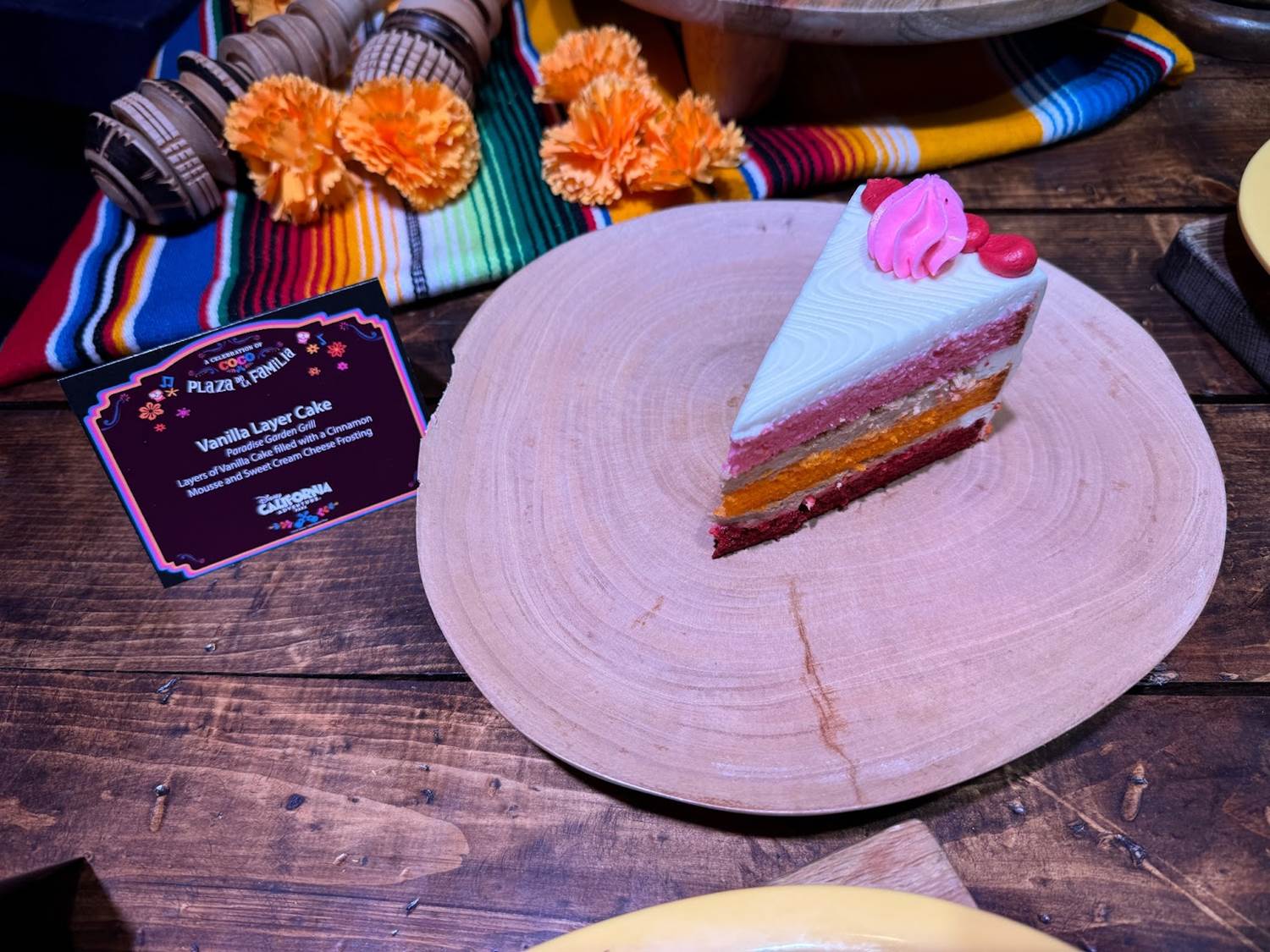 - Vanilla Layer Cake: Layers of vanilla cake filled with a cinnamon mousse and sweet cream cheese frosting
