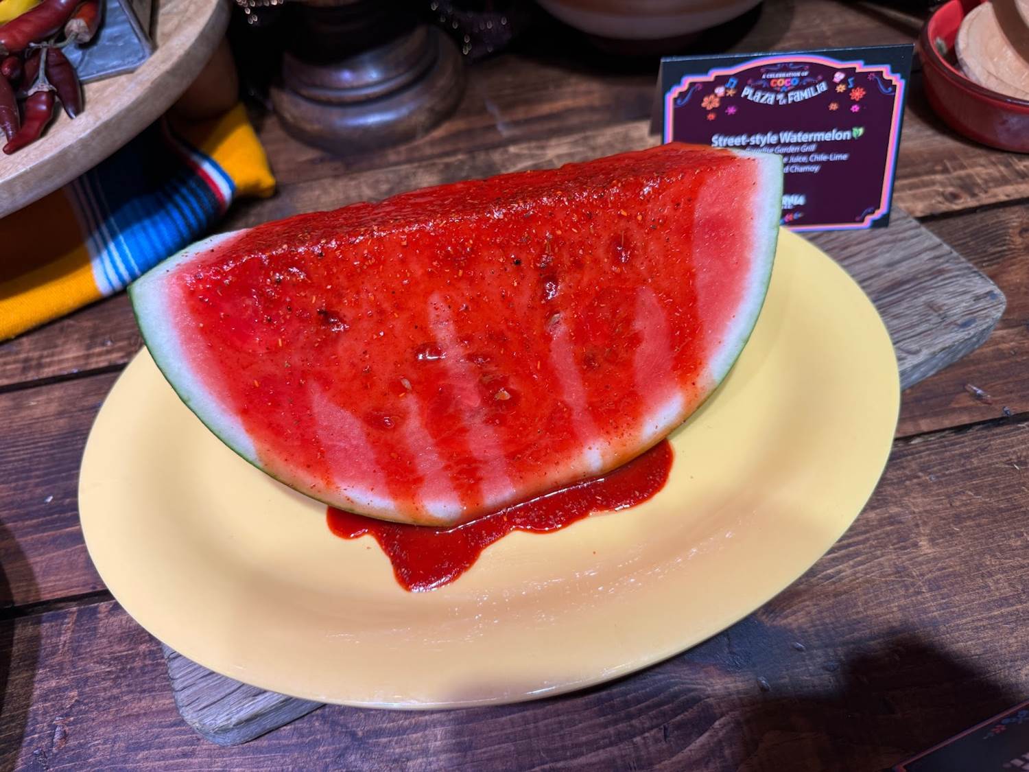 - Street-style Watermelon with lime juice, chile-lime seasoning and chamoy (Plant-based)