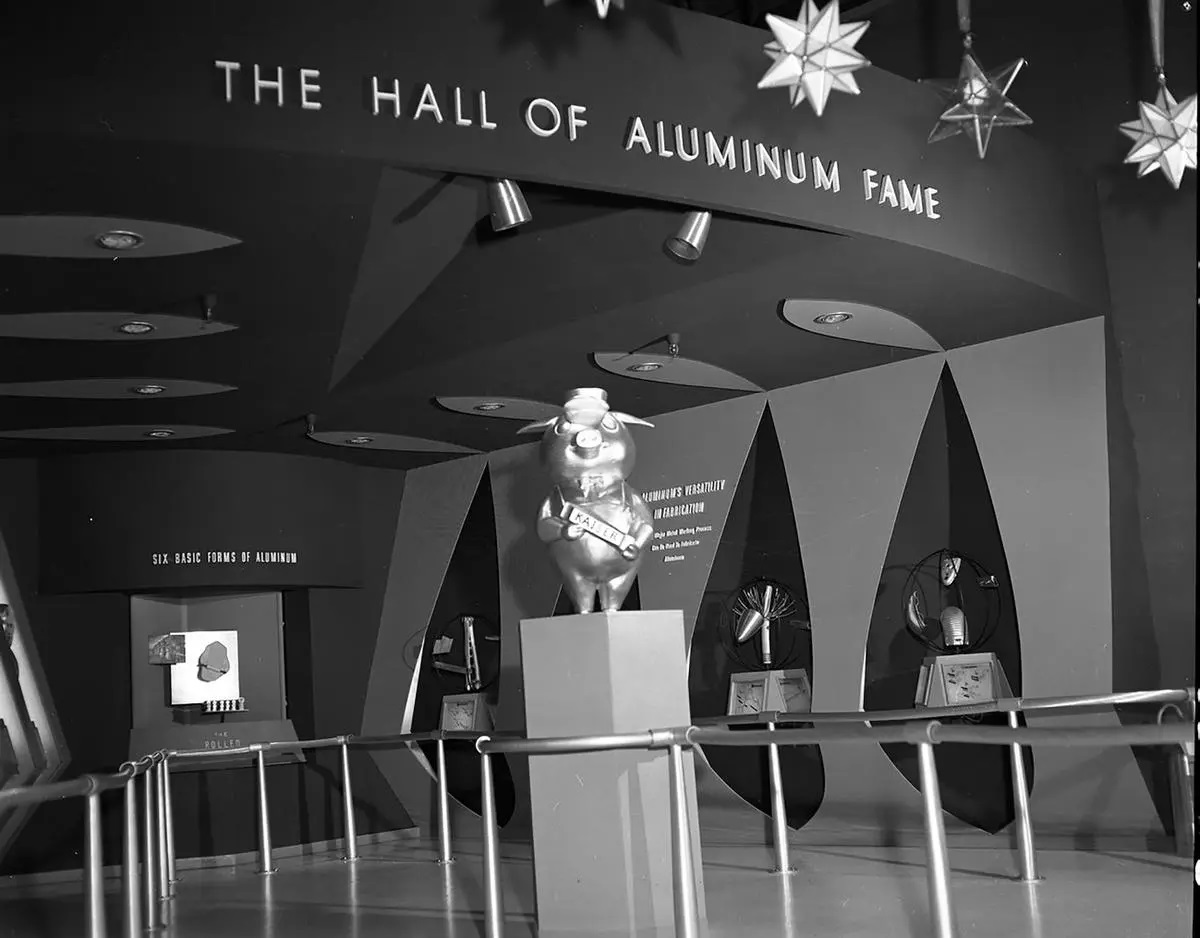 Main Street U.S.A. wasn’t the only location in which there was a sponsorship stipulation. There was one in Tomorrowland that was a bit more contractual in nature. Despite the last section talking about how fast the park was built - Tomorrowland was just under the wire, with our hosting duo pointing out that with everything else in the park, it was almost an afterthought. We did get a Tomorrowland at opening though, complete with attractions even though some were clearly meant to be temporary (20,000 Leagues Under the Sea sets) or very rushed. Among them was the Kaiser Aluminum Hall of Aluminum Fame - but as part of the sponsorship, it was deemed that Aluminum must be used in the construction of the land and used whenever possible.