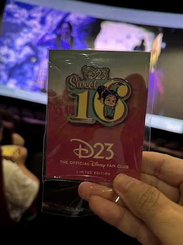 As is the case with other events of this nature, hosted by D23, all those in attendance also got an exclusive pin marking the occasion. This one marking the sweet 16 event, with a sweet logo and Vanellope Von Schweetz featured as well.