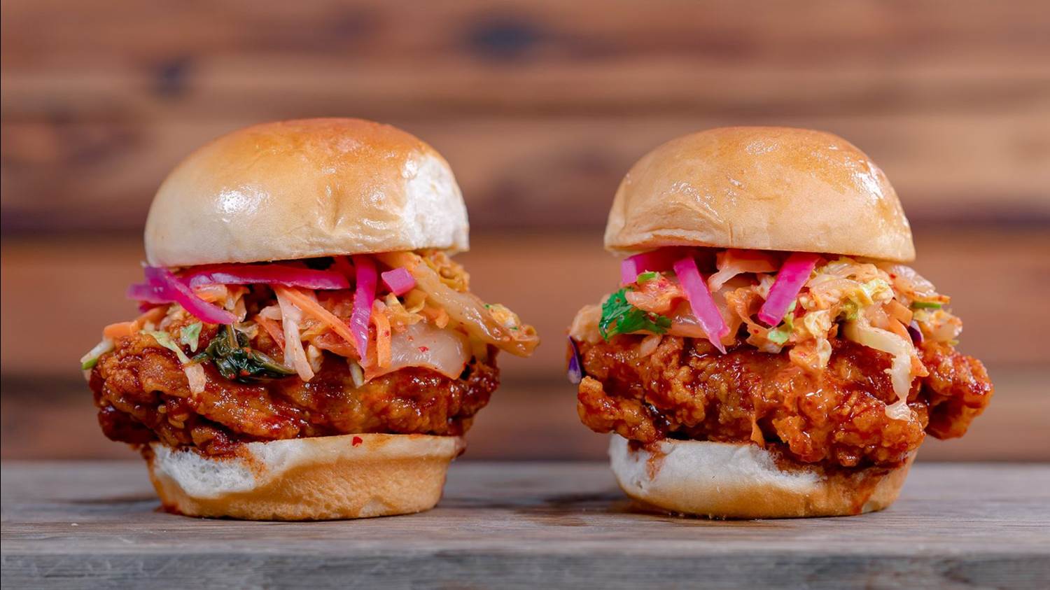 - Korean Fried Chicken Slider: Korean fried chicken topped with gochujang sauce, kimchi coleslaw, and pickled onions served on sweet Hawaiian bread (New) (Available Nov. 15 through Jan. 7)