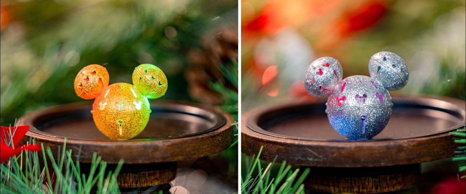 - Silver Glitter Mickey-shaped Jingle Bell Glow Cube to add on to your beverage (New) (Limit two per person, per transaction); Available at the following locations