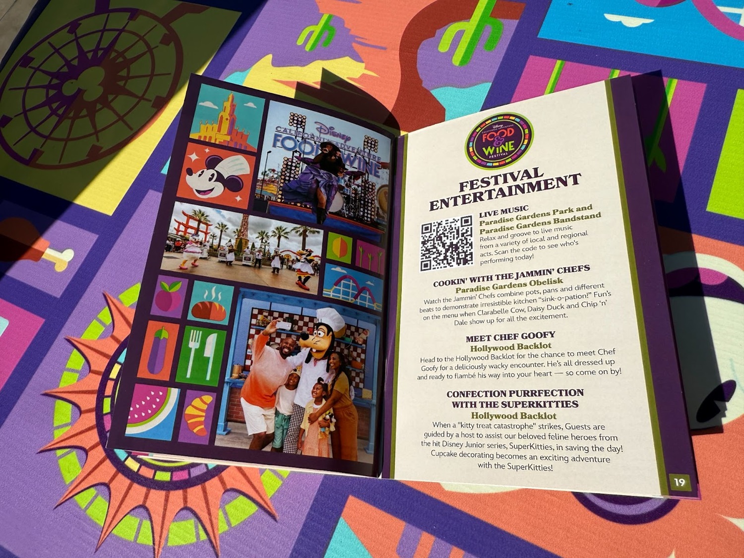 - In addition, you’ll find a list of entertainment offerings as well as an advertisement for Downtown Disney’s Food & Wine offerings.