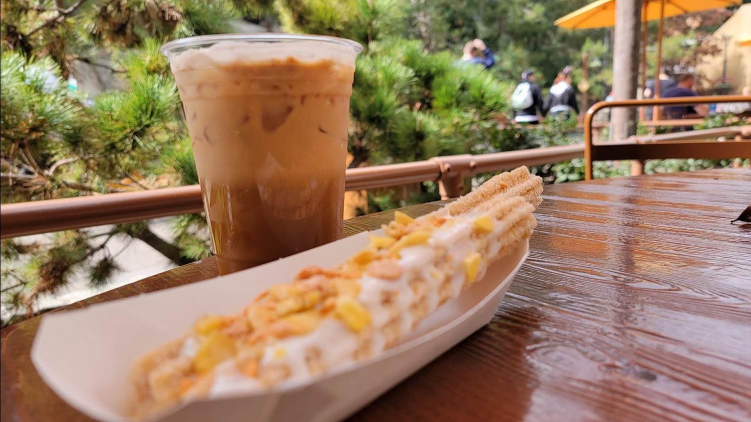 The culinary adventure began with a theme park breakfast standard - churro & coffee. However, the Butterscotch Banana churro (available at Willie’s Churros) leaves behind the cinnamon sugar in favor of banana sugar and is covered in butterscotch frosting, butterscotch chips and a crunchy banana crumble. It went nicely with the Blueberry Pancake Cold Brew (Golden Dreams).This cold brew is not as sweet as one featured during Lunar New Year and the oat milk gave it a more hearty, whole wheat pancake vibe than pillowy sweet pancakes with blueberries. I don’t think I would have appreciated the oat milk as much without it paired with something sweet.