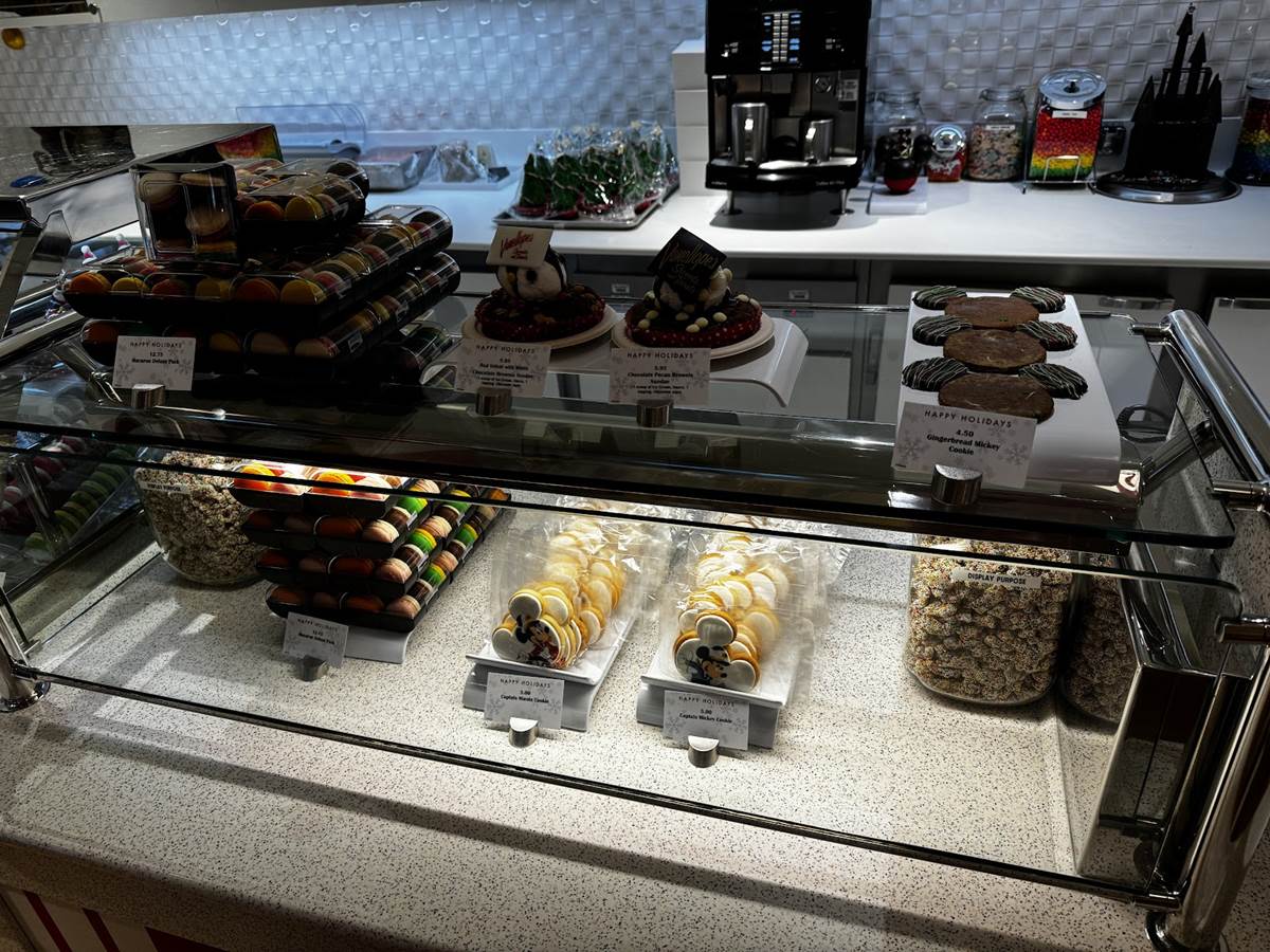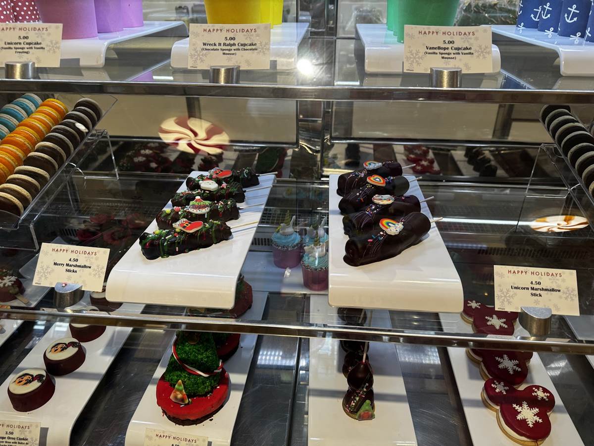 The most wonderful time of the year is even more joyful (and tasty) this holiday season as Disney Cruise Line unwraps new festivities for the whole family aboard Very Merrytime cruises, including a number of special treats available. We found a case full of them at Vanellope’s aboard the Disney Dream on our cruise, have a look!