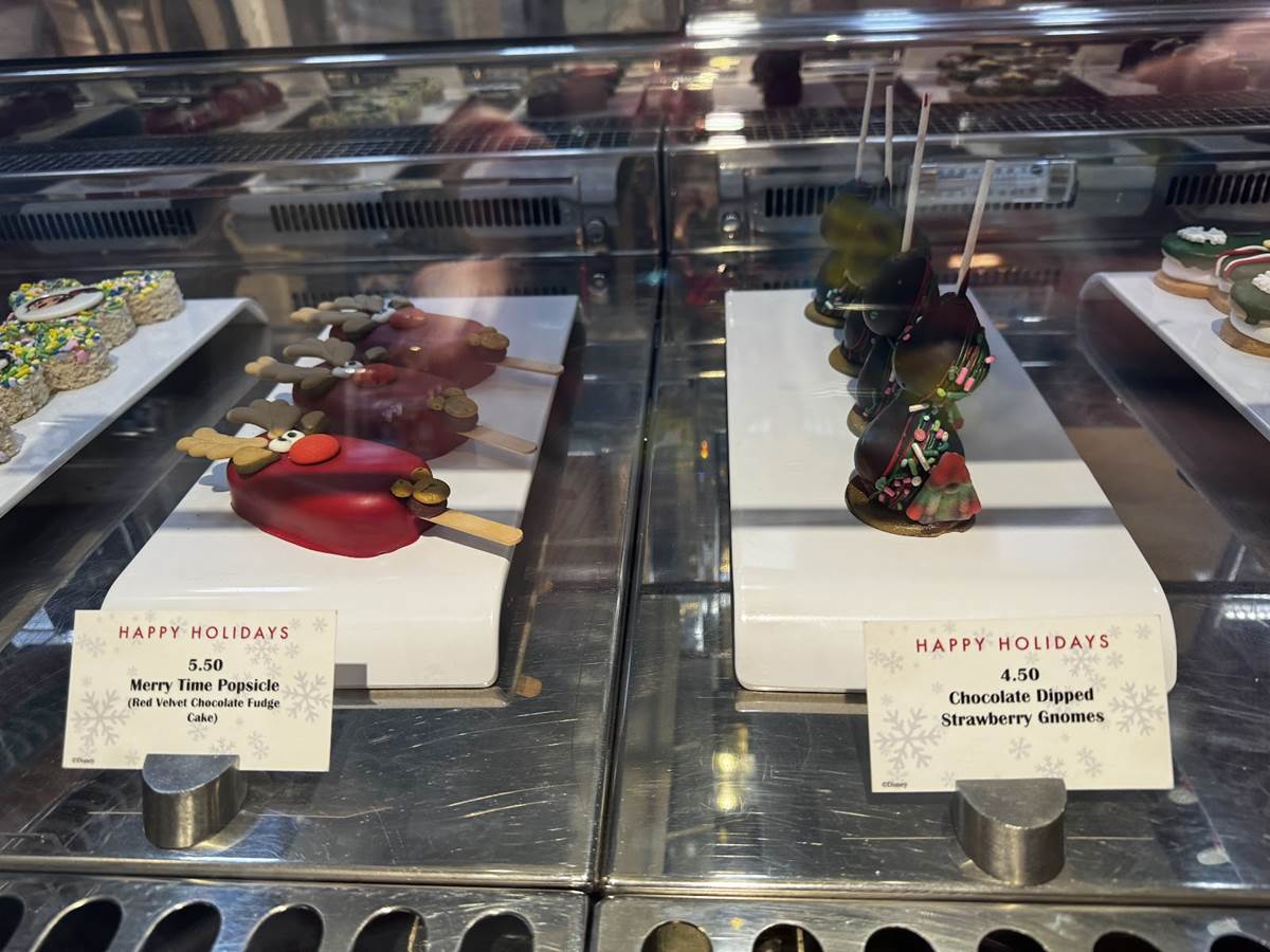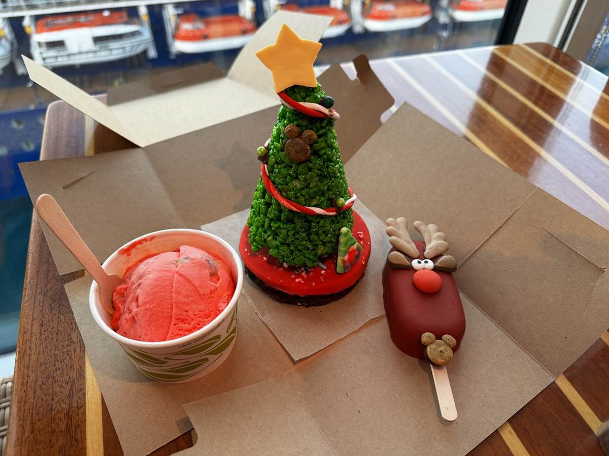The festive treats are one part of the fun of a Very Merrytime cruise aboard the Disney Cruise Line. These treats were found at Vanellope’s Sweets and Treats aboard the Disney Dream, but can be expected at equivalent locations, like Sweet on You aboard the Disney Fantasy and Inside Out: Joyful Sweets aboard the Disney Wish.