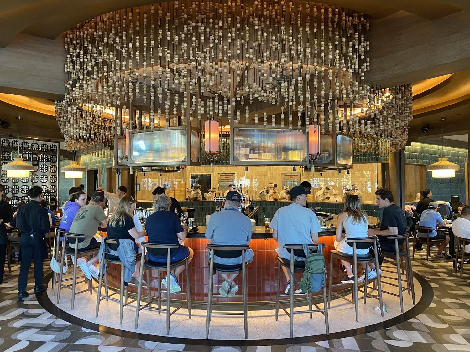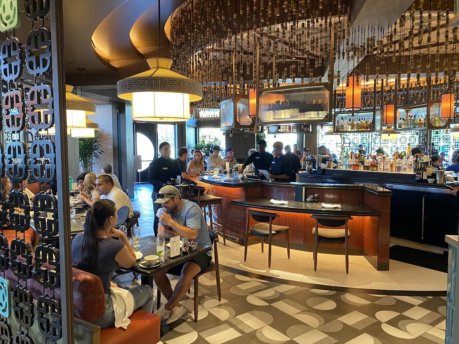 The new restaurant’s exterior is a dramatic, contemporary take on a traditional Chinese pavilion rooftop structure. A suspended, beaded installation over the circular central bar greets guests upon entering the restaurant, with traditional style Chinese pendants softly illuminating the space. An expo kitchen will serve as a backdrop, inviting guests to witness the artistry behind the dumpling-making process firsthand.