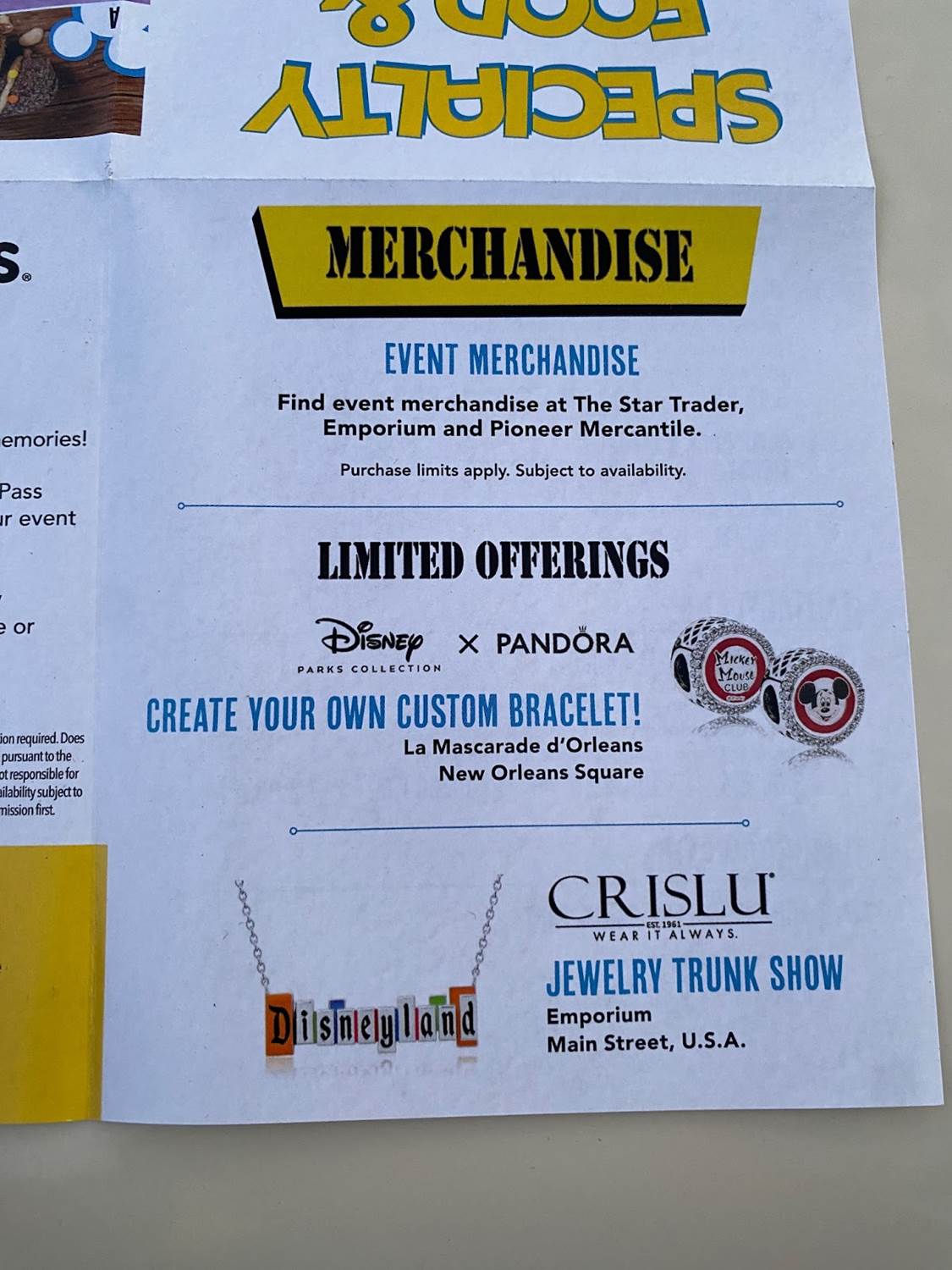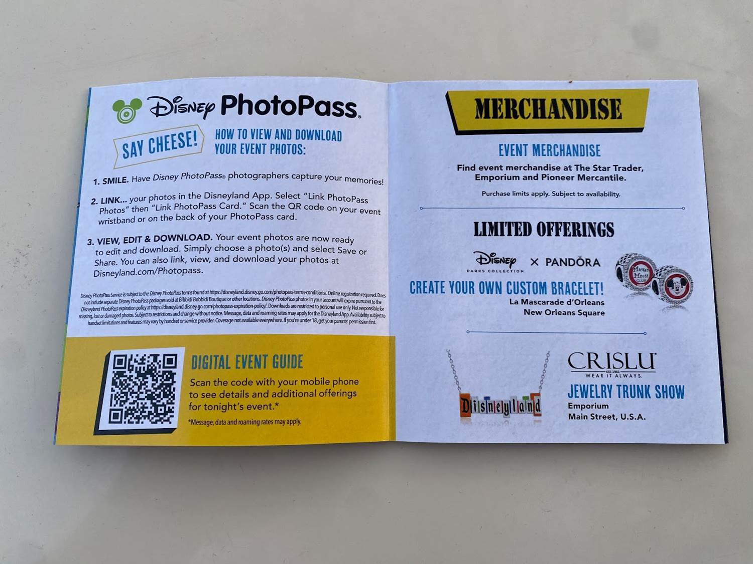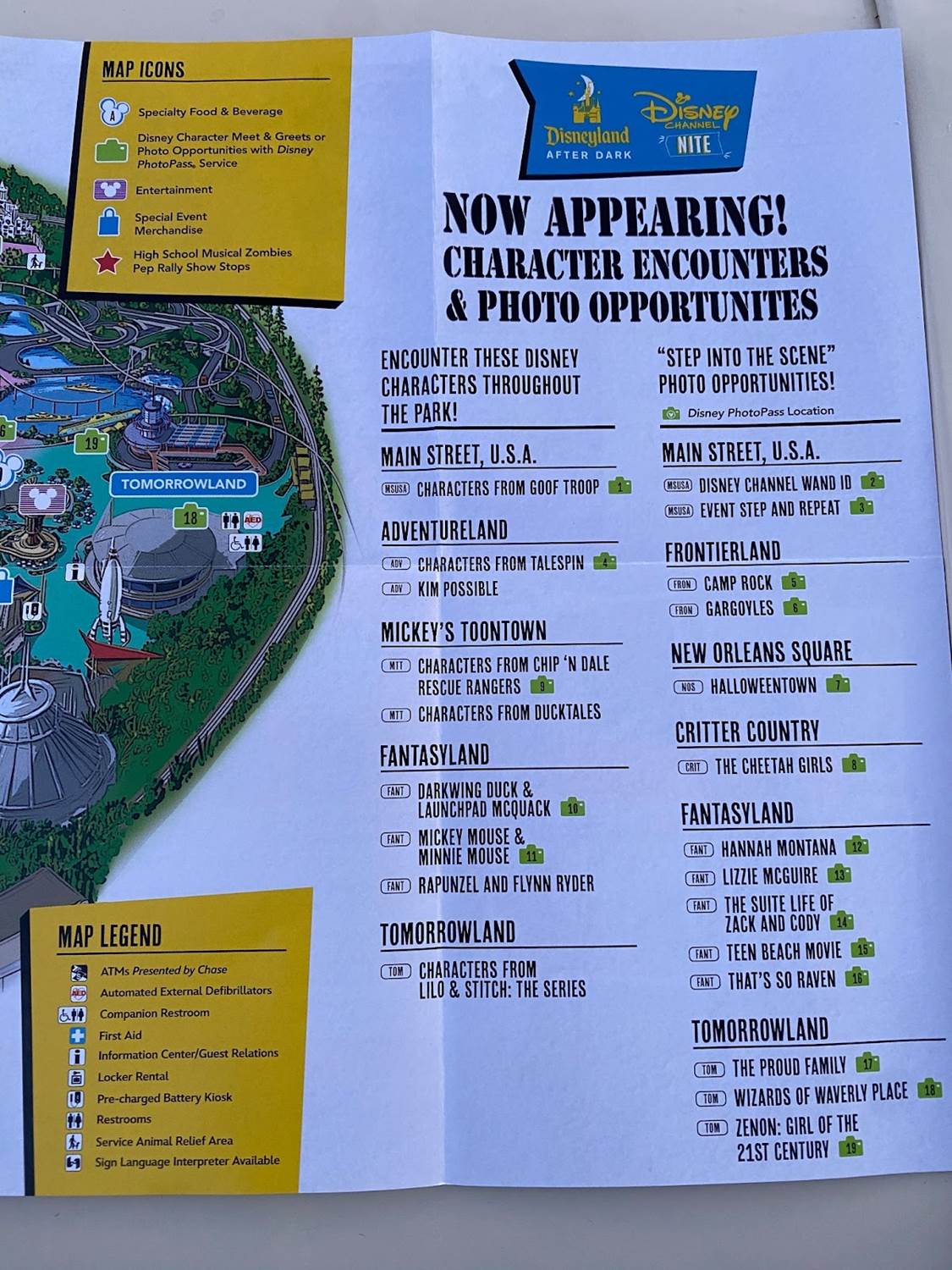 Inside, the map of Disneyland Park notes what attractions are open, along with special entertainment and character encounters.
