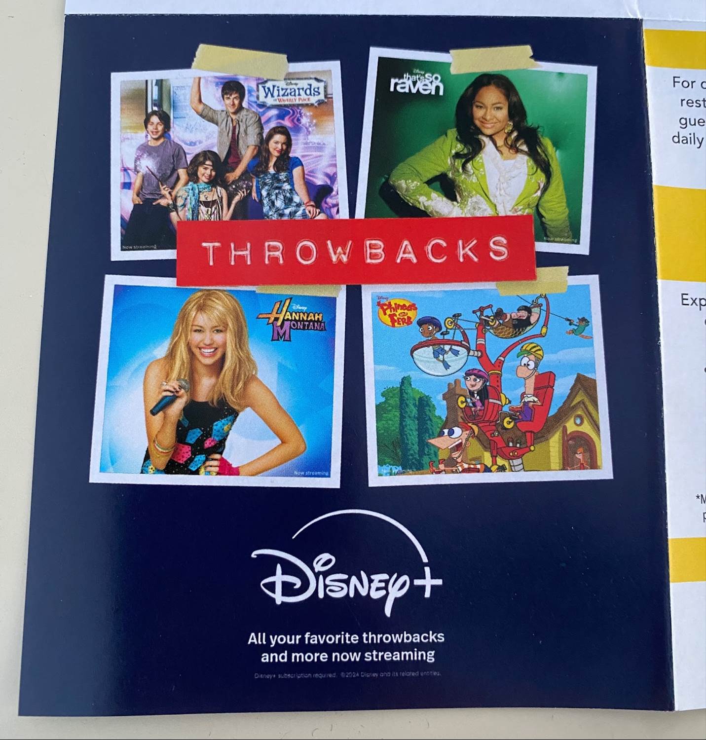 The event guide notes that many throwback Disney Channel series, such as Wizards of Waverly Place, That’s So Raven, Hannah Montana and Phineas and Ferb are available to stream on Disney+.
