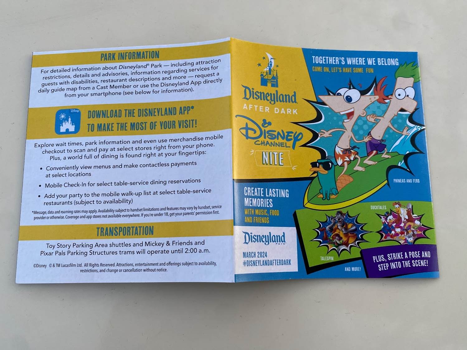 The event guide features some more recent Disney Channel characters, Phineas and Ferb, as well as TaleSpin and DuckTales, two classic series from the 1990s.