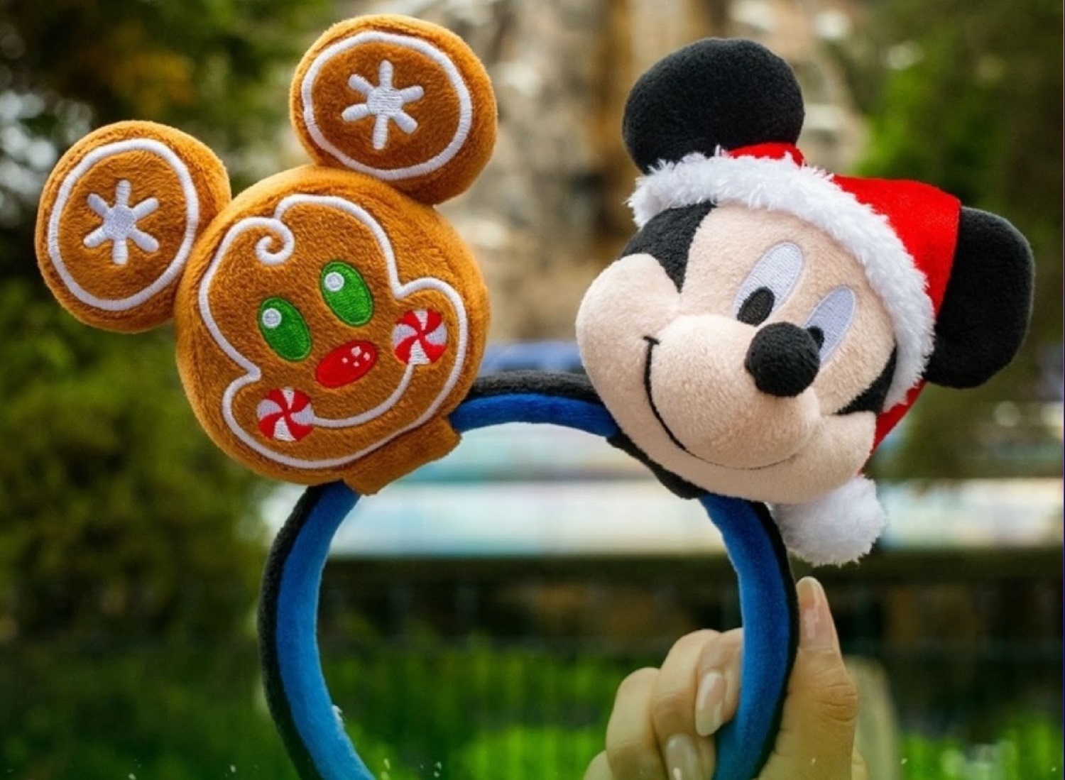 - Santa Mickey Mouse and a gingerbread cookie Mickey head will add festive cheer to your headband configuration.