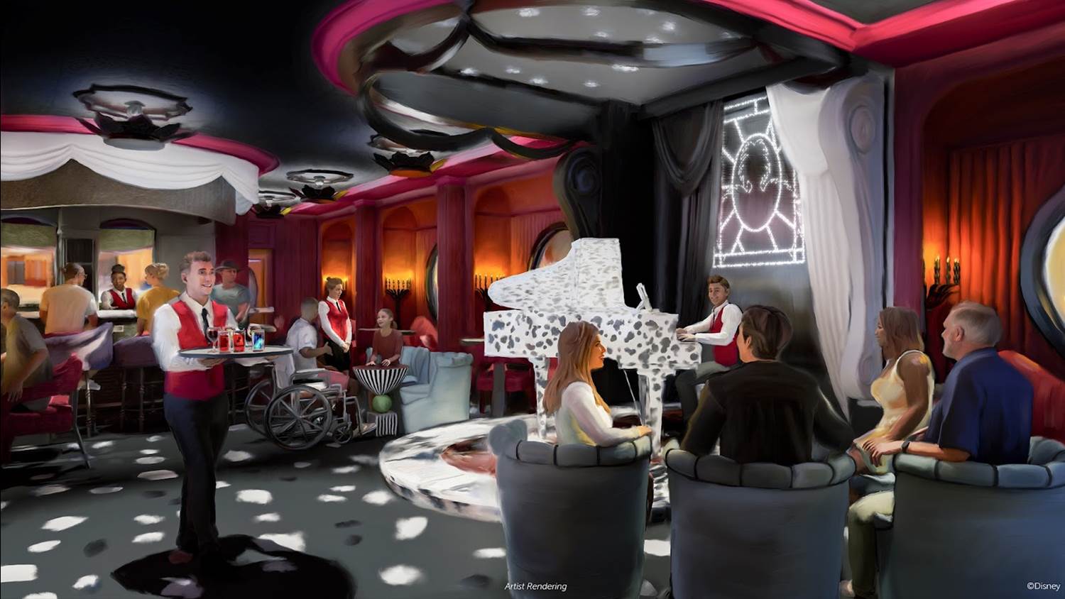 - An evening at De Vil’s piano lounge will be a lavish affair emblematic of the bar’s namesake, the fabulously over-the-top villain Cruella de Vil of Walt Disney Animation Studios’ 101 Dalmatians and the acclaimed 2021 live action film.