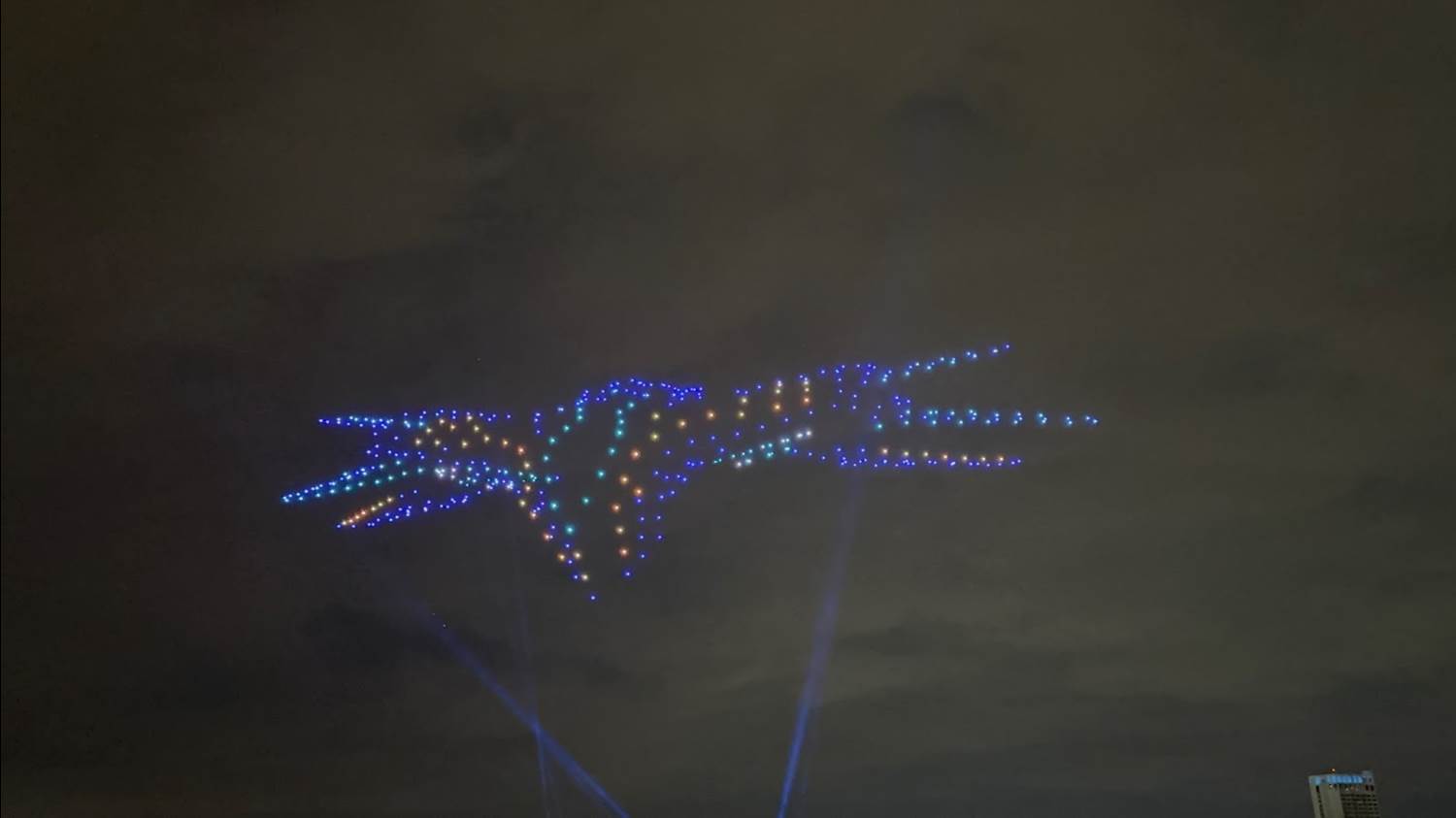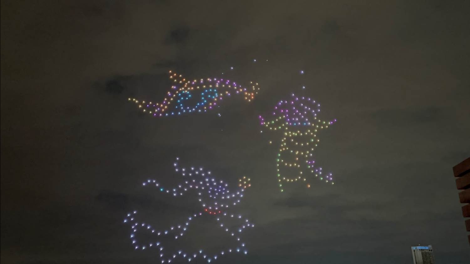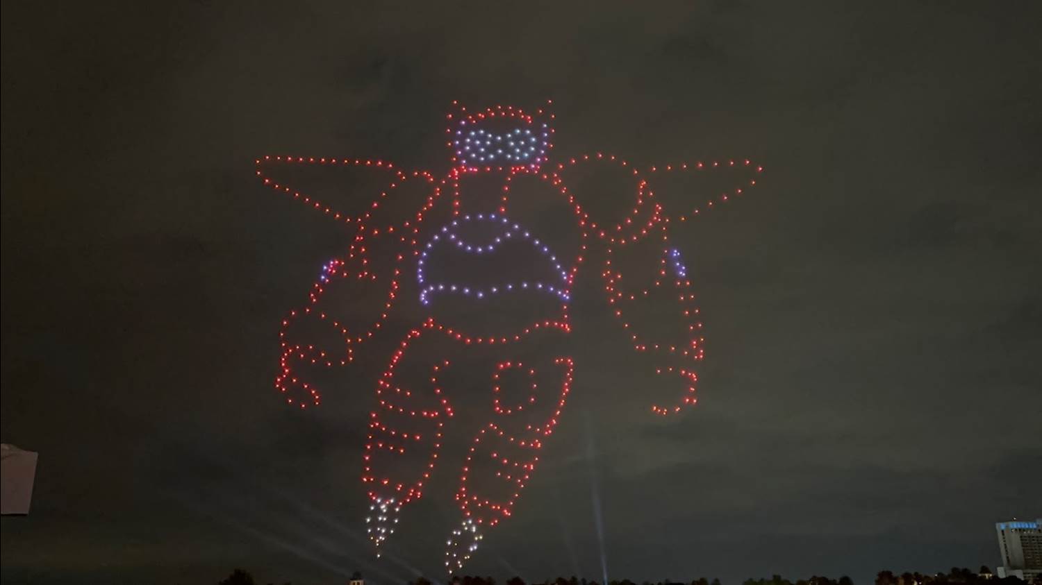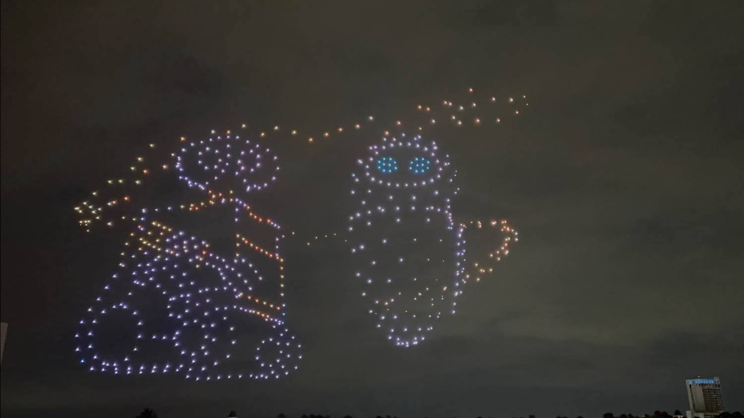 - The show features characters that either fly or have had dreams of flight, including some rarer characters, such as the Rocketeer and Orange Bird. 800 drones will be featured in the show, all working together to create a massive canvas in the night sky.