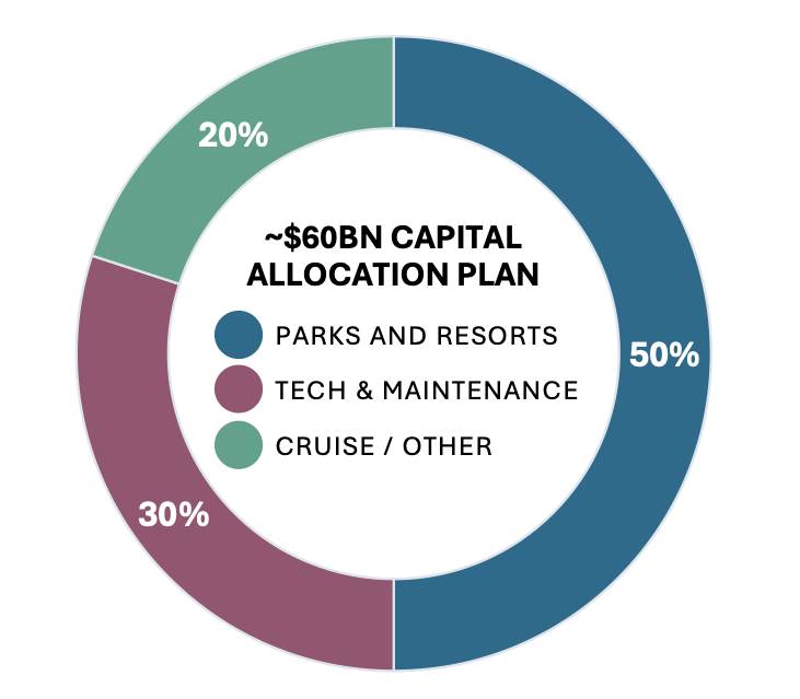 - 50% will go to Parks and Resorts, 30% to Tech & Maintenance and 20% to Cruise / Other.