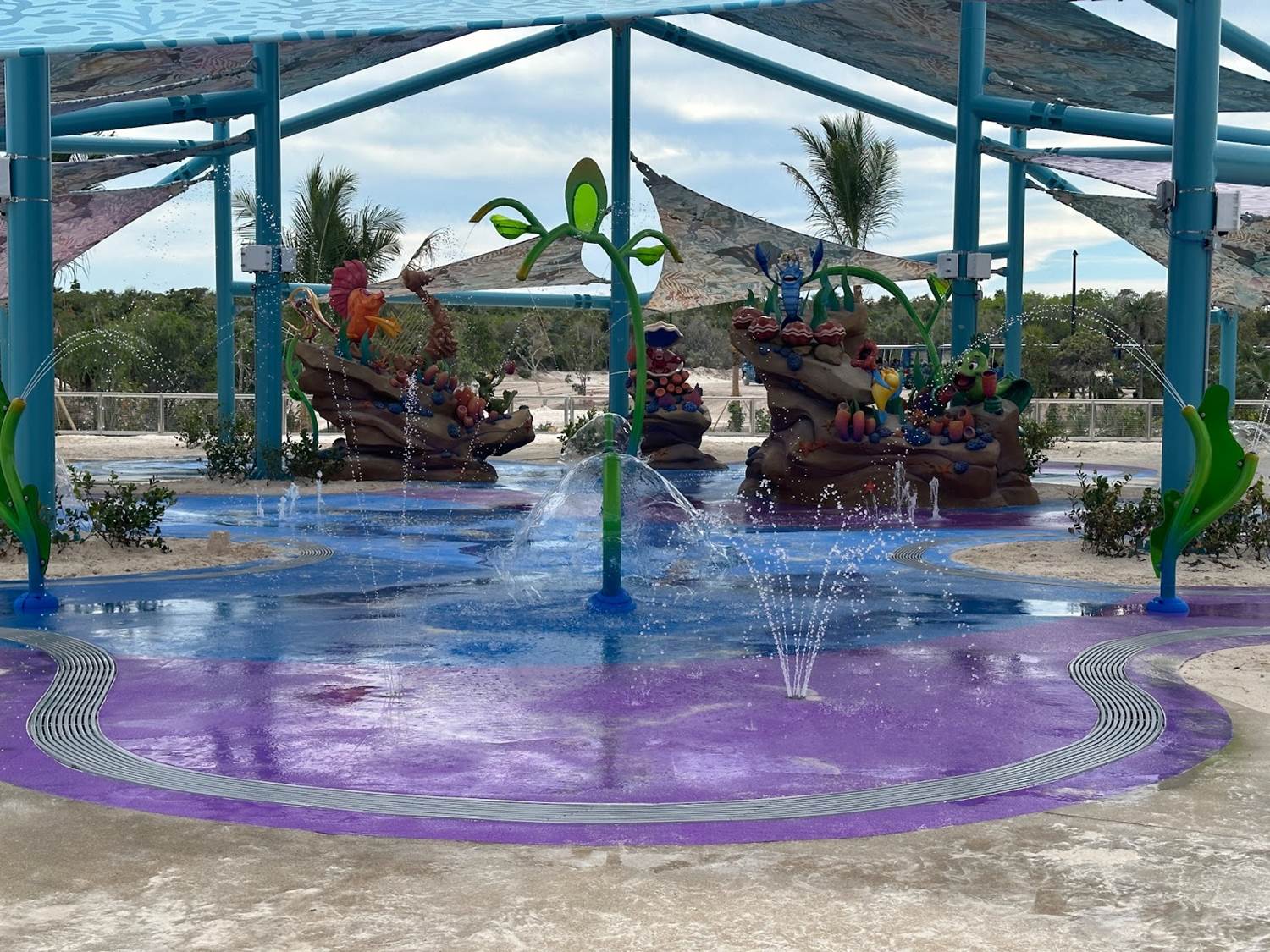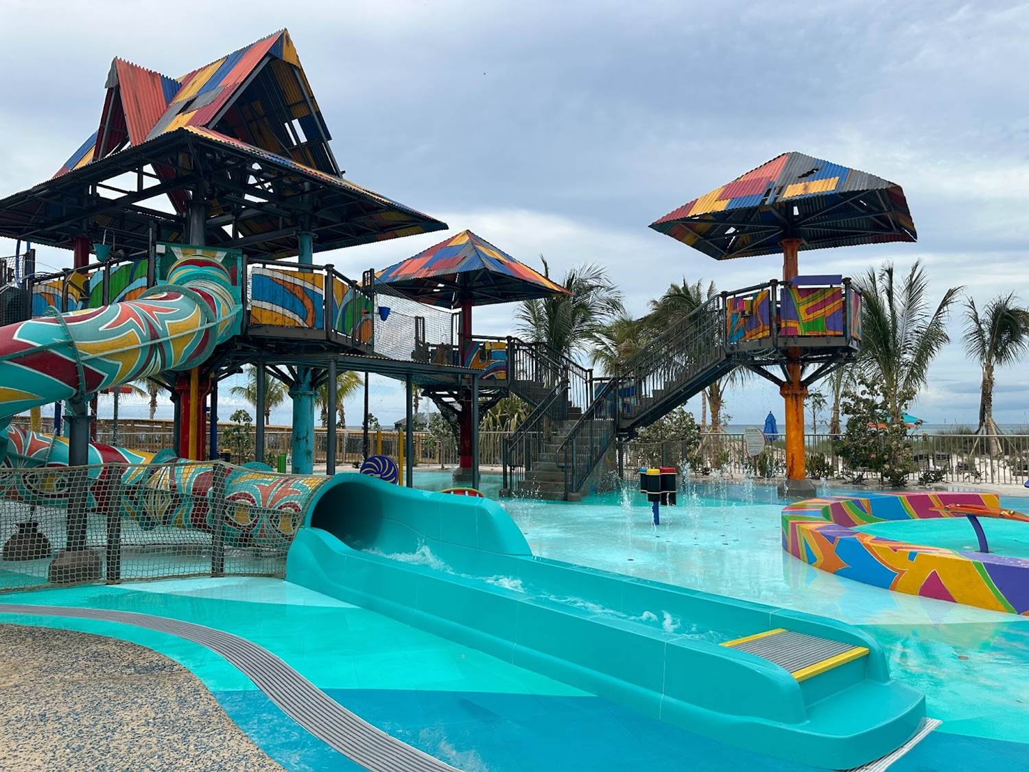 Meanwhile, everyone can have fun at the colorful Rush Out Gush Out water play area.