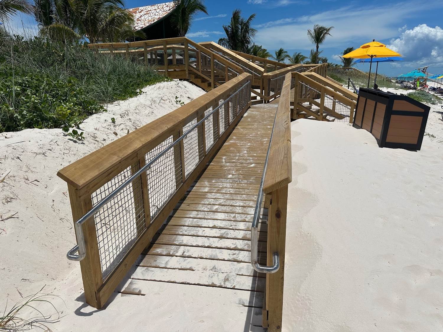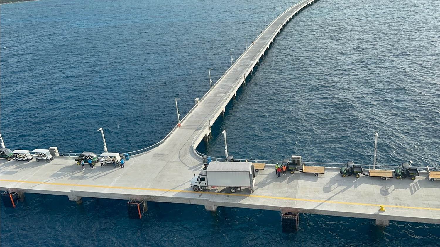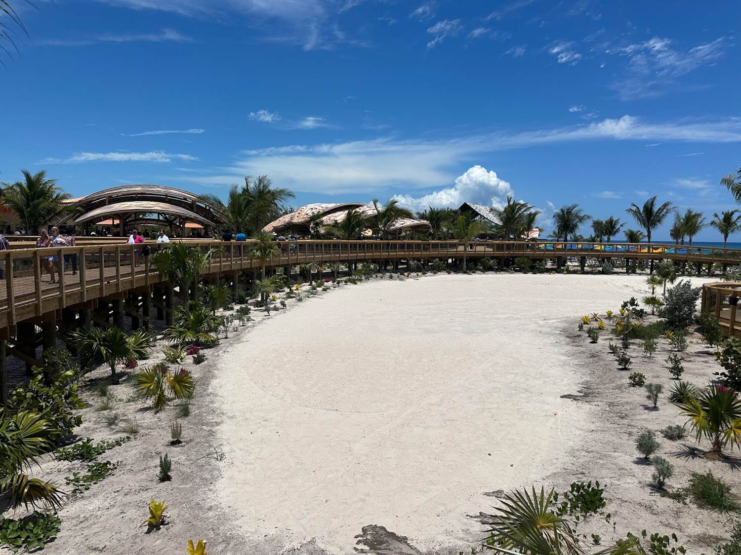 Located on the island of Eleuthera, The Bahamas, Disney Lookout Cay at Lighthouse Point welcomed guests for previews yesterday ahead of its official debut in just a few days. Arriving at the island, we find a rather long pier, which equalled a 13 minutes and .5 miles walk to the tram stop from the ship.