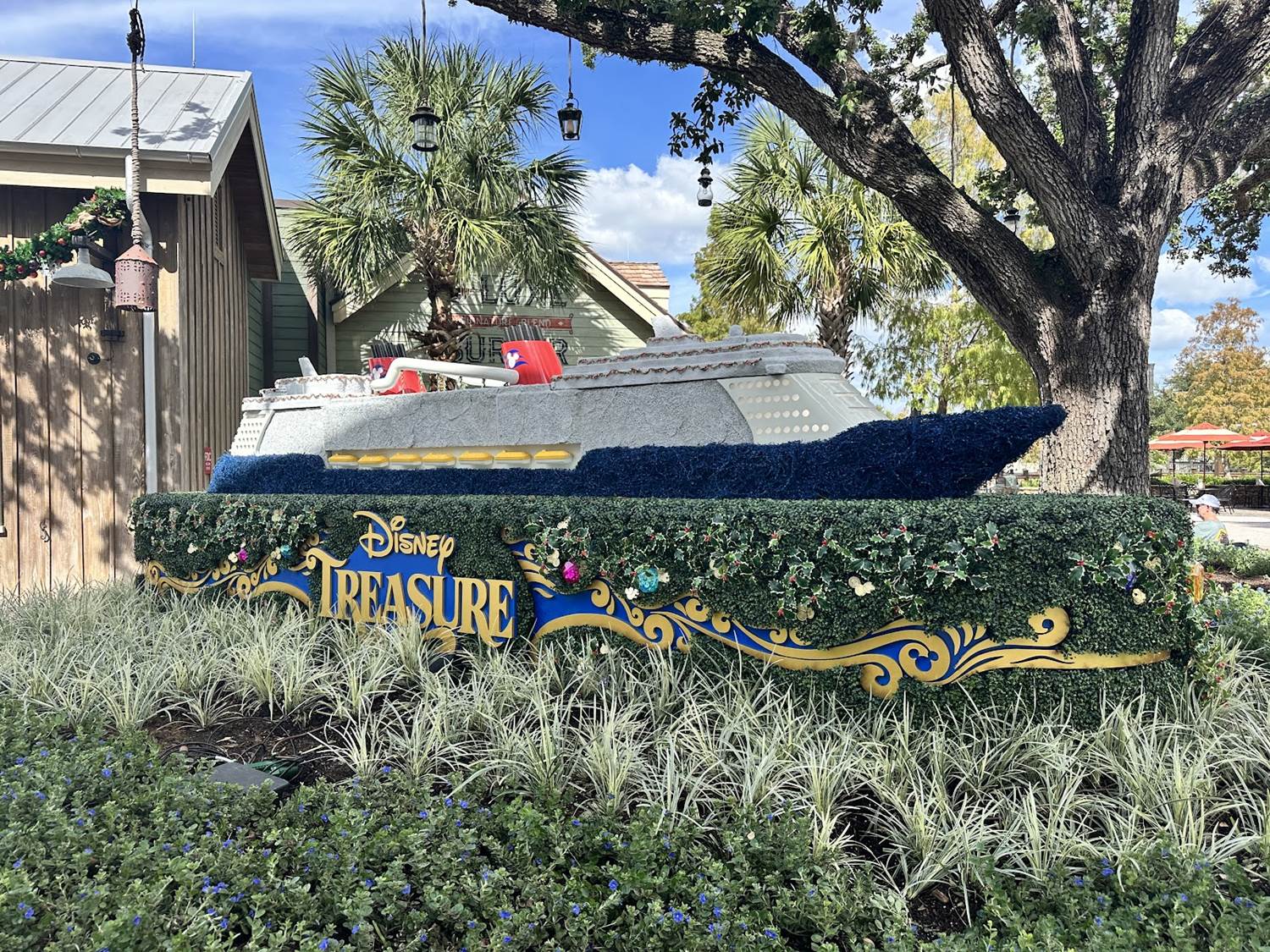 Trees this year celebrate Disney+, Disney Parks, and even Walt Disney World annual passholders with their own tree that is activated by a MagicBand+. There is also a fun display celebrating the latest ship to debut in the Disney Cruise Line fleet, the Disney Treasure (pictured above), that is set to make her maiden voyage next month.