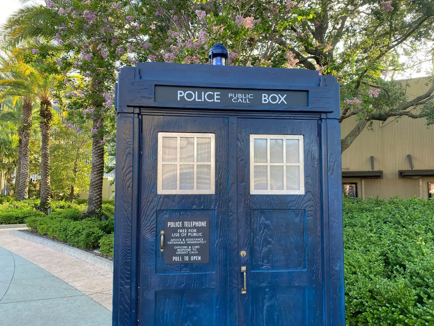 - The famed Police Box is currently located next to the Orange Garage and AMC Theatres entrances.