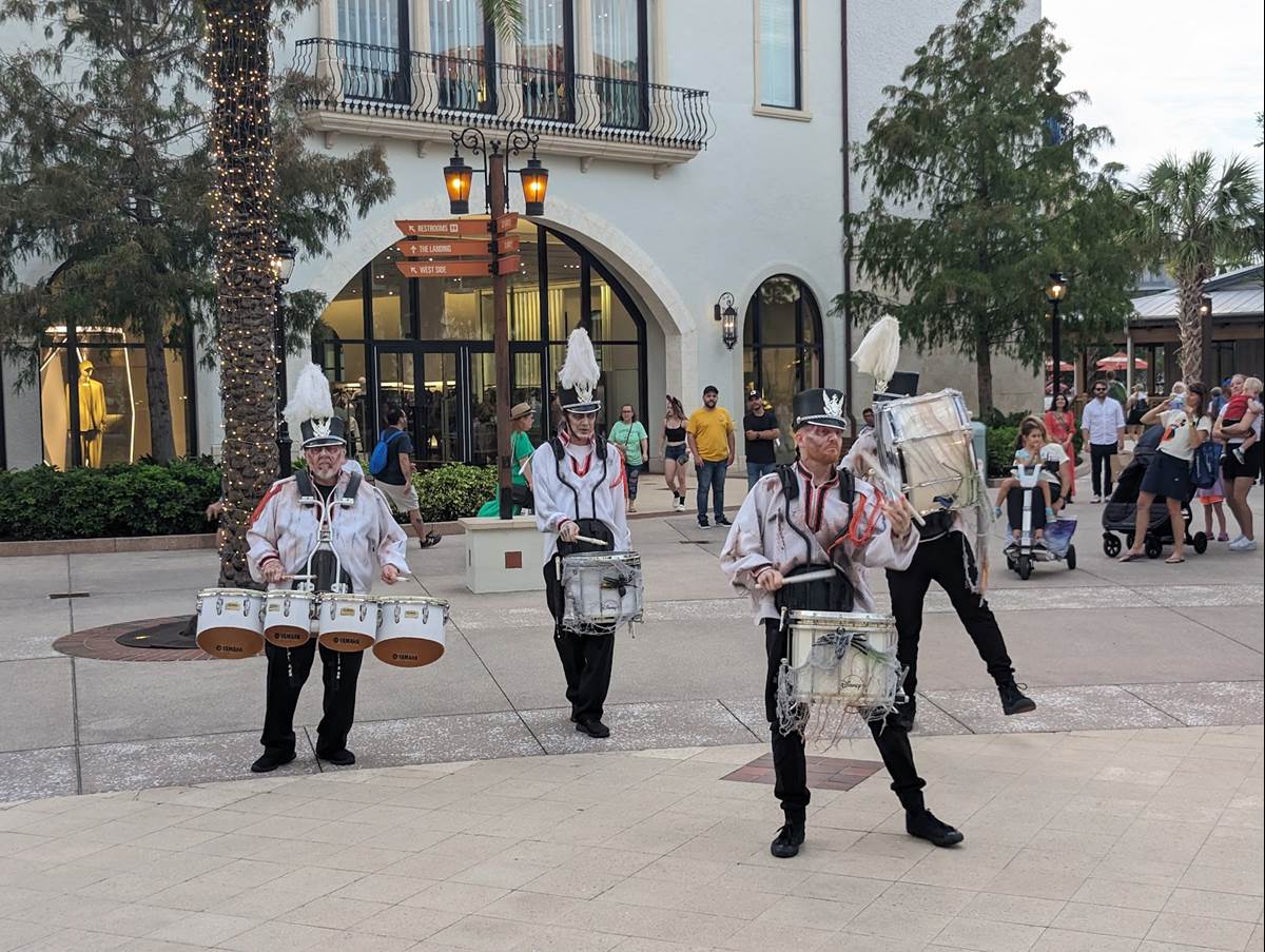 This new entertainment offering is a drum line with a similar vibe to the popular Jammitors at EPCOT entertaining the crowds throughout Disney Springs’ Town Center, between the Lime Garage and the Orange Garage. The official Disney Springs website does not list this special entertainment offering, likely keeping the showtimes a surprise for those who visit. If you head to Disney Springs and consider this performance a must see, be sure to check with Guest Relations in Town Center nearby.