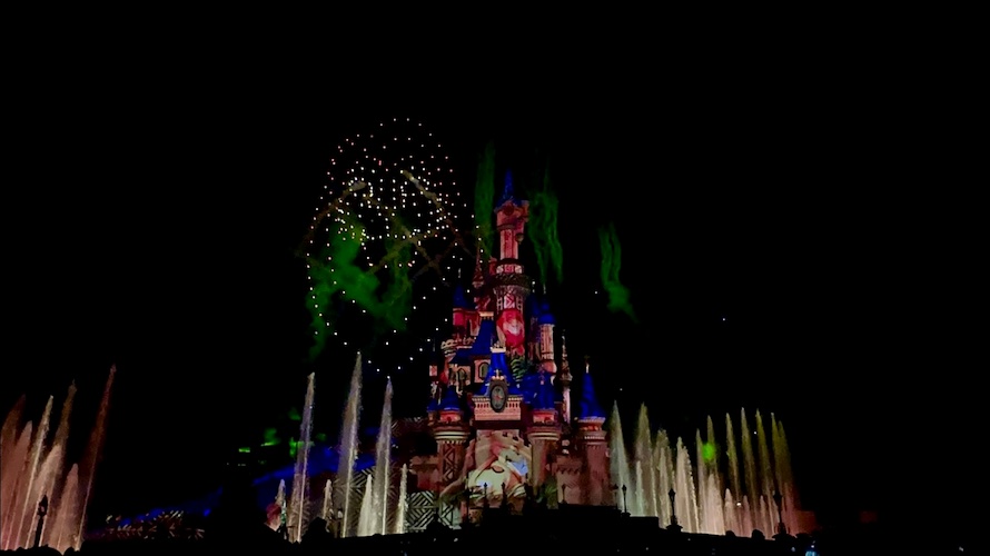 Under the Parisian sky tonight, Disneyland Paris introduced its newest nighttime spectacular, Disney Tales of Magic. In addition to the usual things we’ve come to expect from Disneyland Paris shows, such as drones, pyrotechnics and fountains, this show features projections on the buildings of Main Street, U.S.A. for the first time.