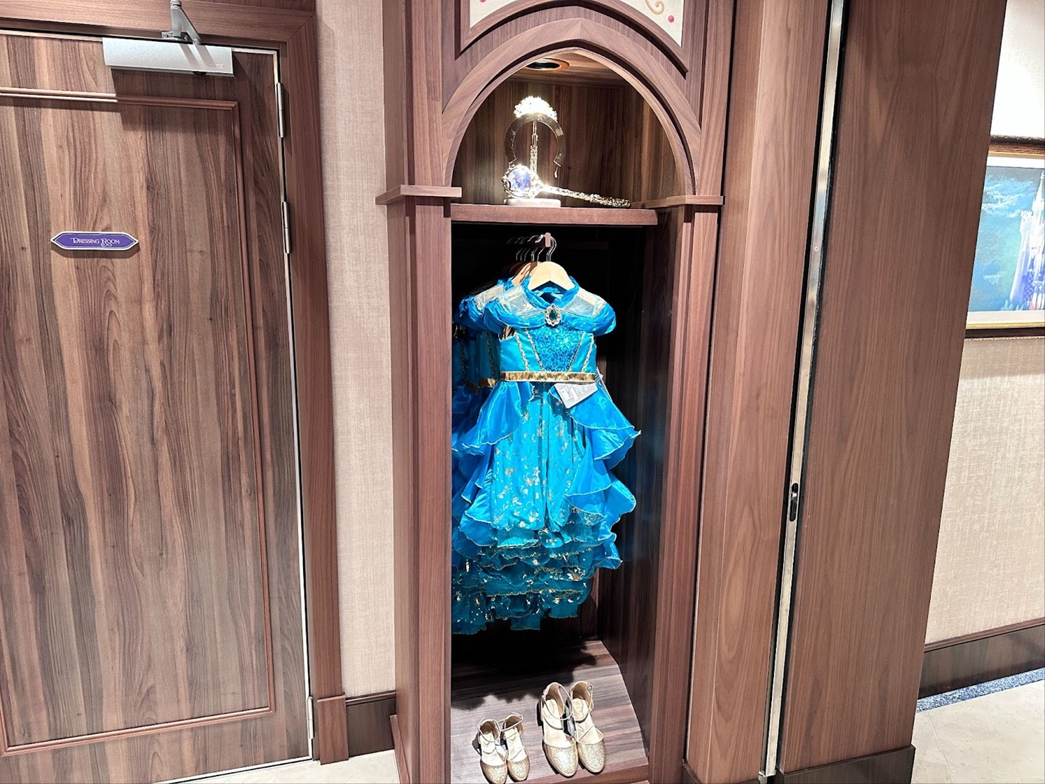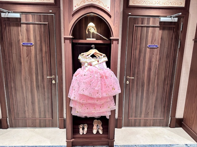 Stepping inside the salon, guests will find a Fantasyland-inspired salon area with displays for all the amazing outfits available to pick out.