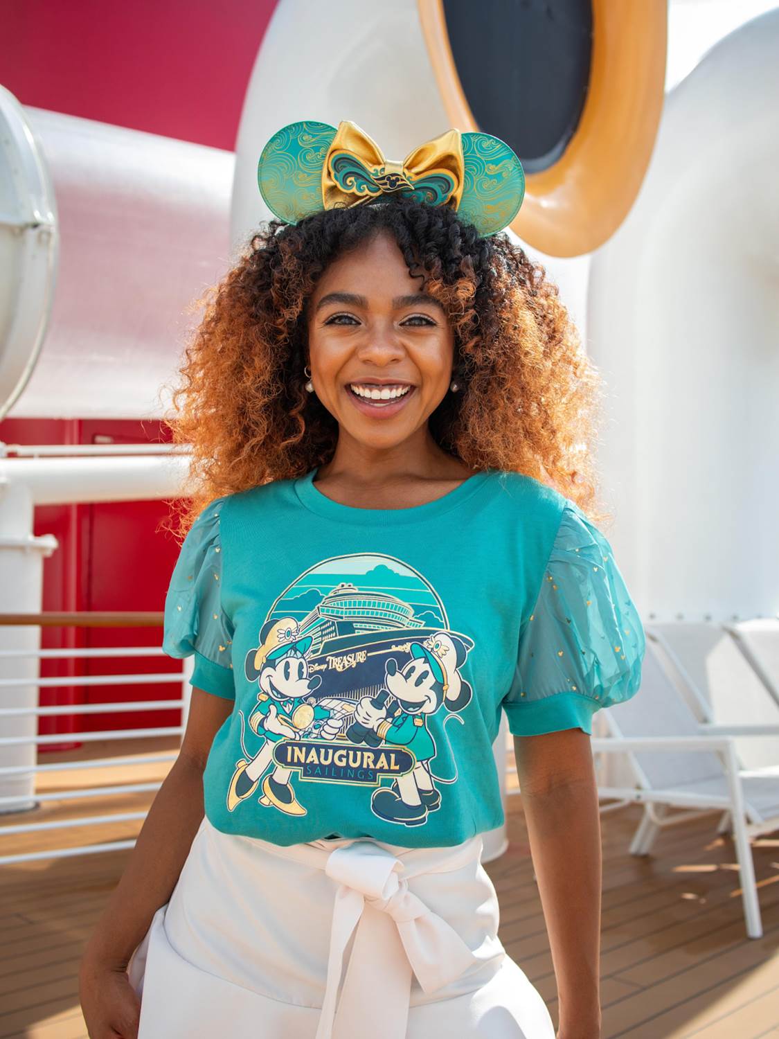 - Last, but certainly not least, you can commemorate the debut season of the latest ship with the Disney Treasure Inaugural Collection. The items in this line – from apparel to accessories and keepsakes – boast a jewel-toned color scheme, reminiscent of the ship’s Agrabah-inspired Grand Hall and Princess Jasmine’s iconic royal garb.